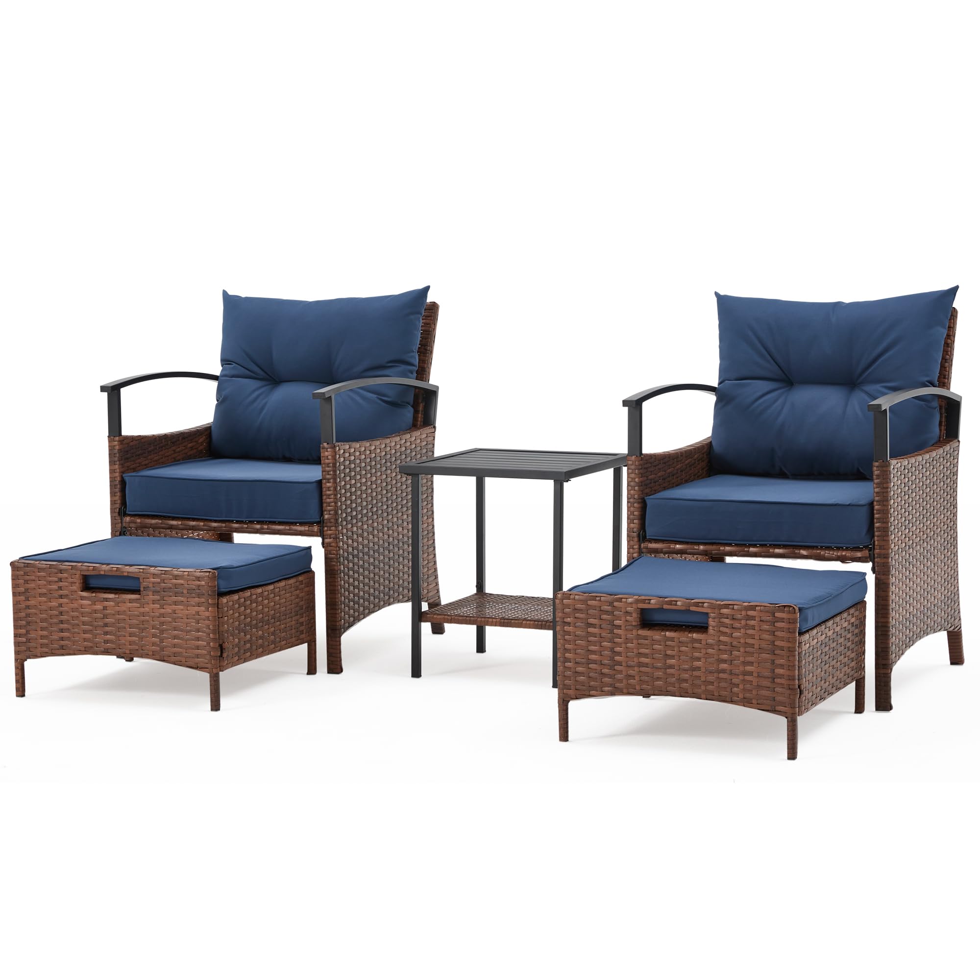 ECOTOUGE 5 Pieces Patio Furniture Set, Outdoor Wicker Chairs with Pull Out Ottoman & Metal Coffee Table, Rattan Conversation Set for Garden, Deck,