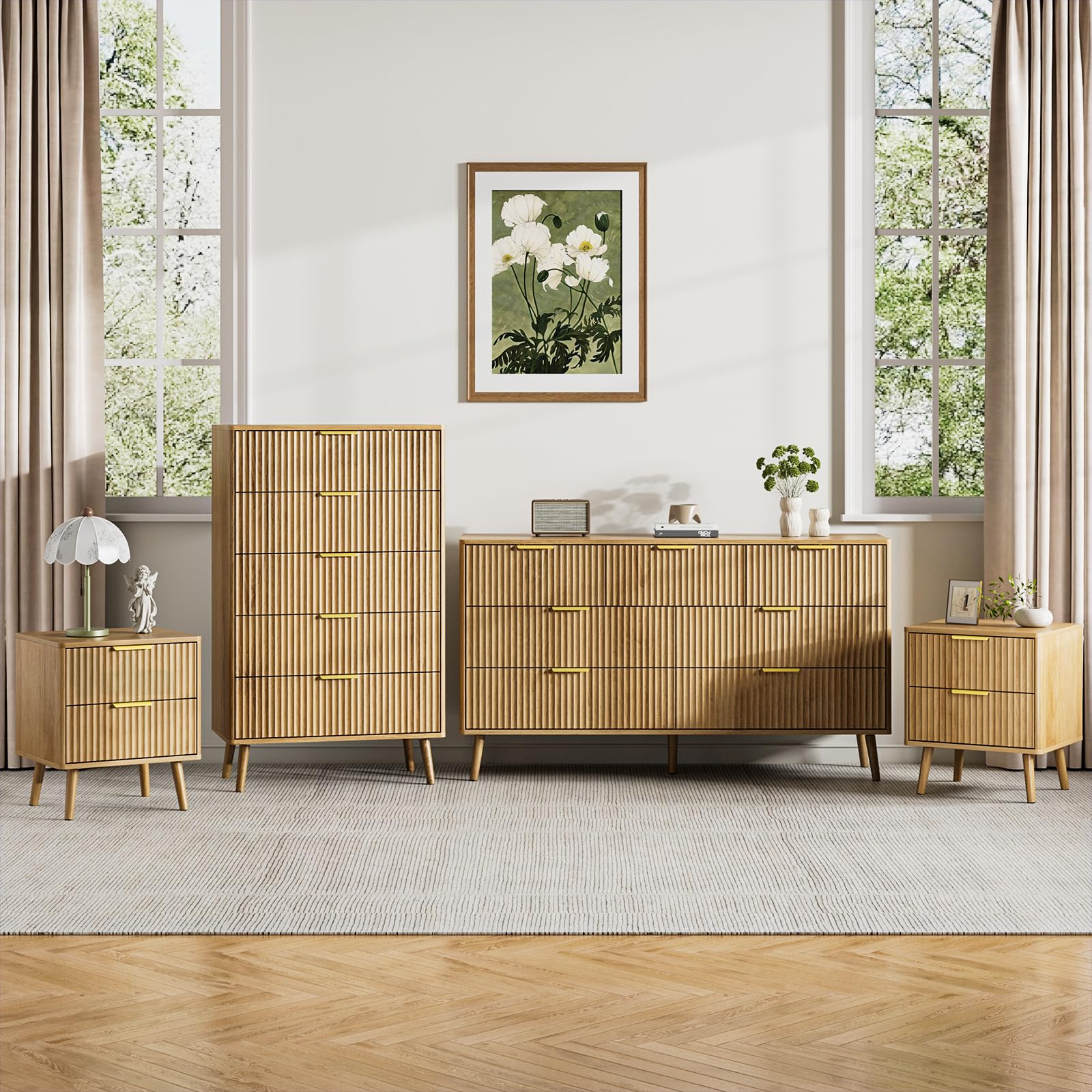 LYNSOM Fluted Dresser and Nightstand Sets 4 Piece, 2-Drawer Nightstands and 5/7 Drawers Dresser, Wood Bedroom Furniture Set for Home, Bedroom, Hallway