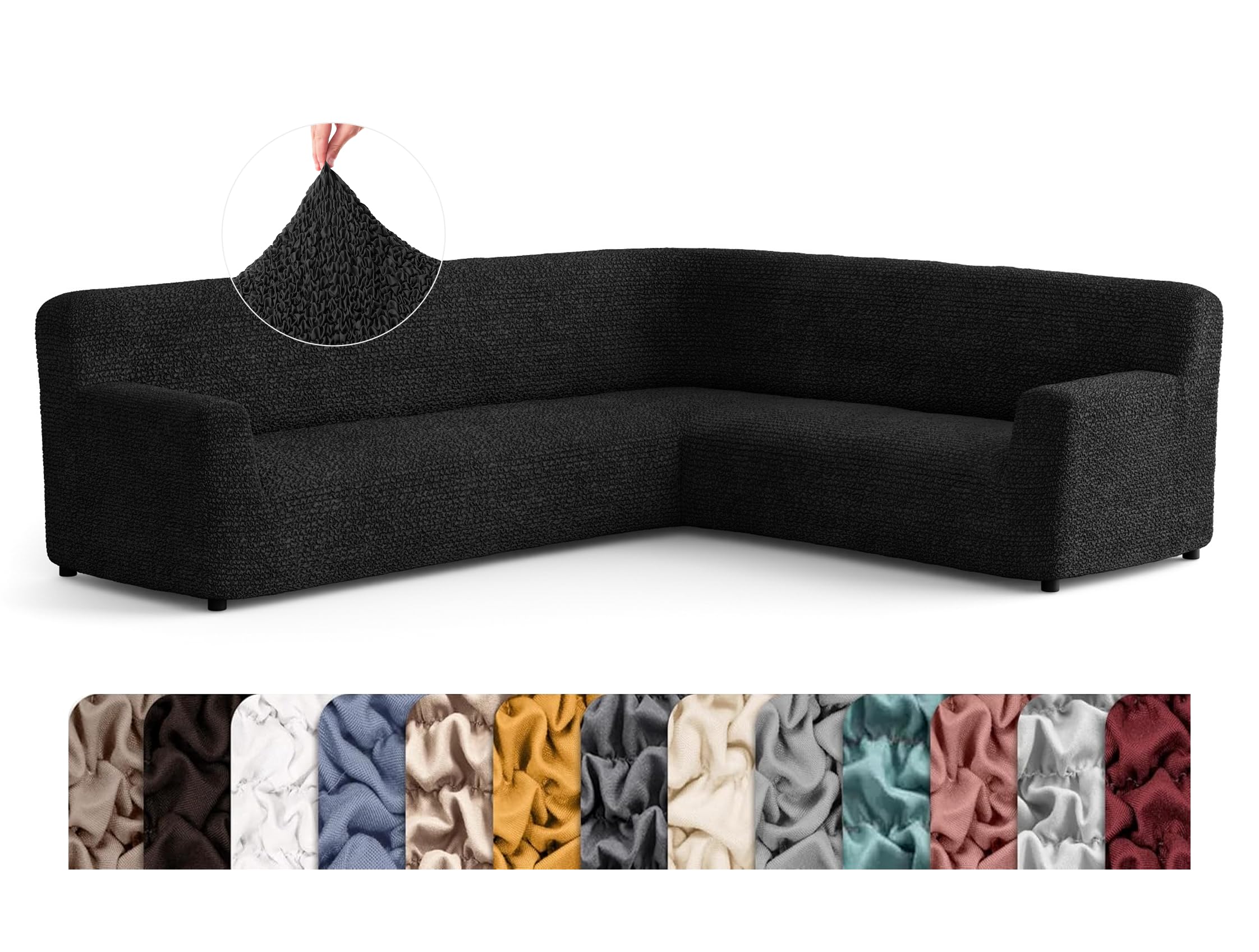 PAULATO BY GA.I.CO. Stretch Corner Sectional Sofa Slipcover 1-Piece – Bi-Elastic L Shape Couch Cover – Furniture Protector Machine Washable – Black (