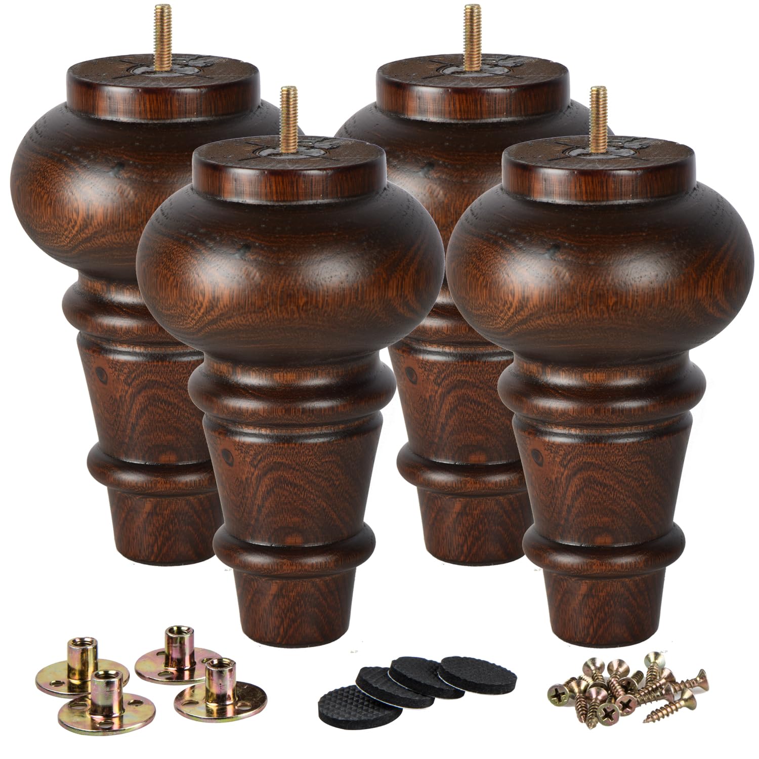 Texphw Unfinished Oak Sofa Legs - Heavy Duty Mid Century Solid Wood Replacement Furniture Legs Set of 4 for Couch, Table, Bench, Bed, Dresser, Chair -