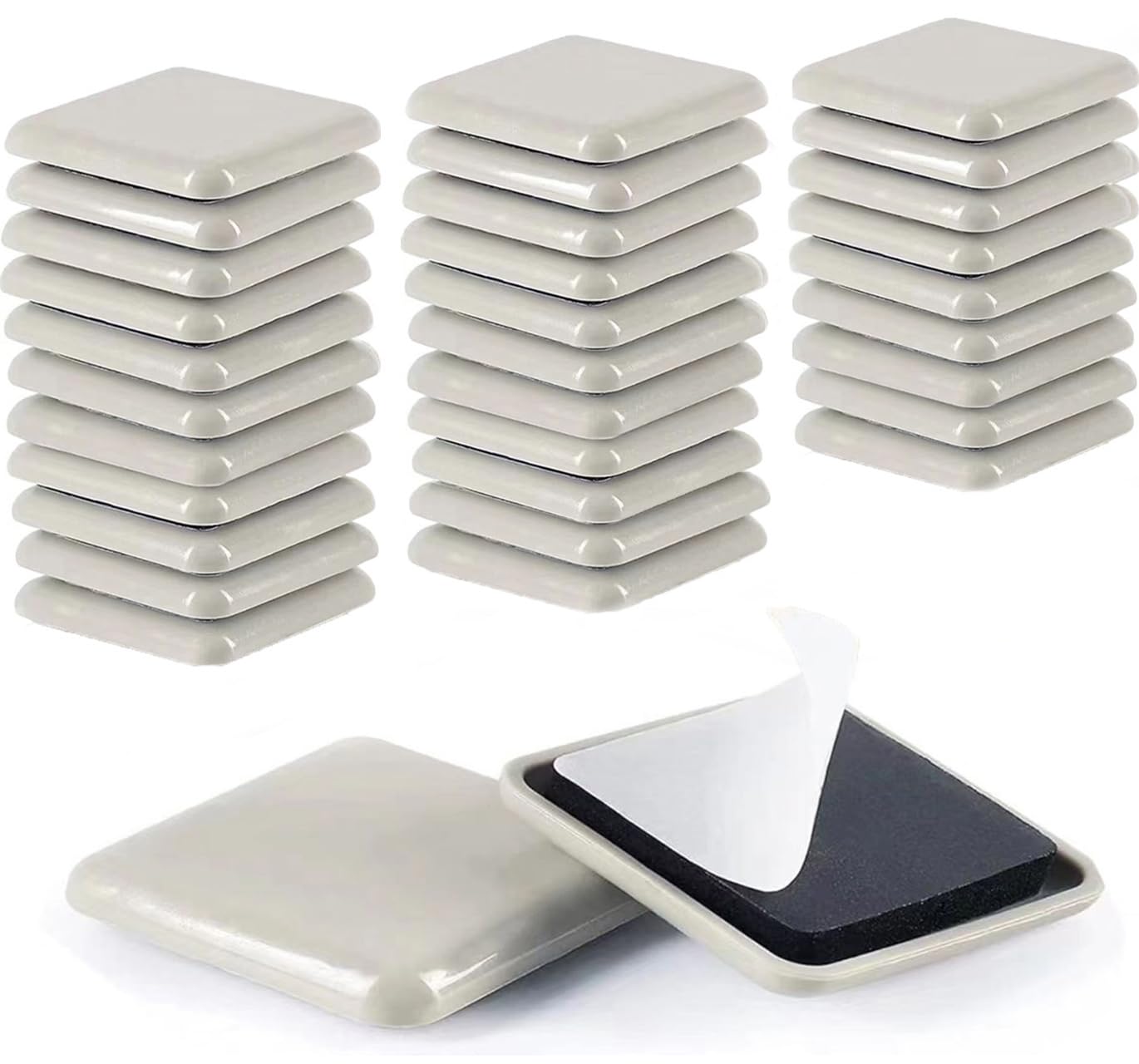Self Stick Furniture Sliders feature super strong adhesive to provide a lasting hold on your furniture, ensure that the sliders does not slip off when moving the furniture. Furniture moving pads with smooth glide surface is easy to clean and furniture can be moved with ease while not scratching or d