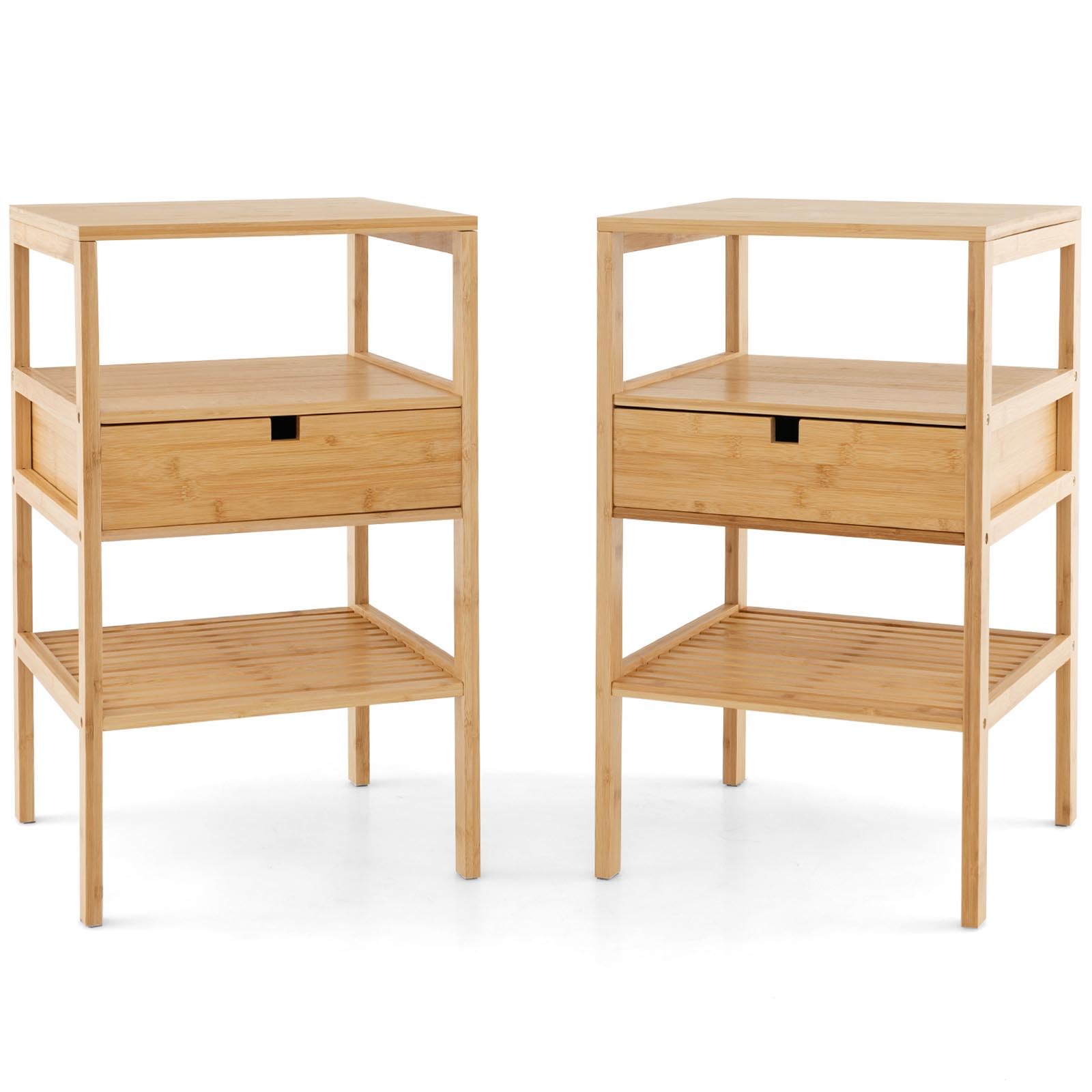 Giantex Bamboo Nightstands Set of 2, Wood Side Tables with Drawer and 2 Storage Shelves, Multifunctional Bedside Tables for Small Spaces, MCM Boho