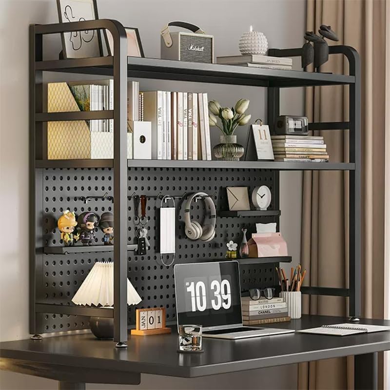 Hutch for Dorm Room Desk, Metal Desktop Bookshelf, Sturdy Desktop Bookshelf for Office DeskCountertop Hutch Display Shelf for Home Dorm Computer Desk