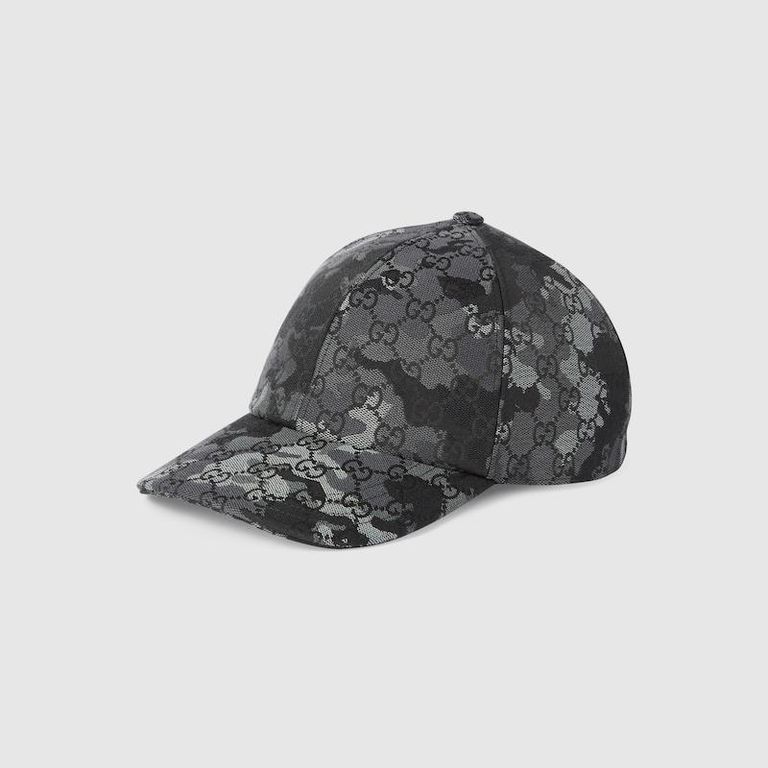 Men's Gucci Gg Marbled Canvas Baseball Hat, Gg Canvas - Black - Hats The men's soft accessories collection introduces dynamic shapes in grey and black camouflage print GG canvas. This baseball hat is presented in a camouflage GG marbled canvas...