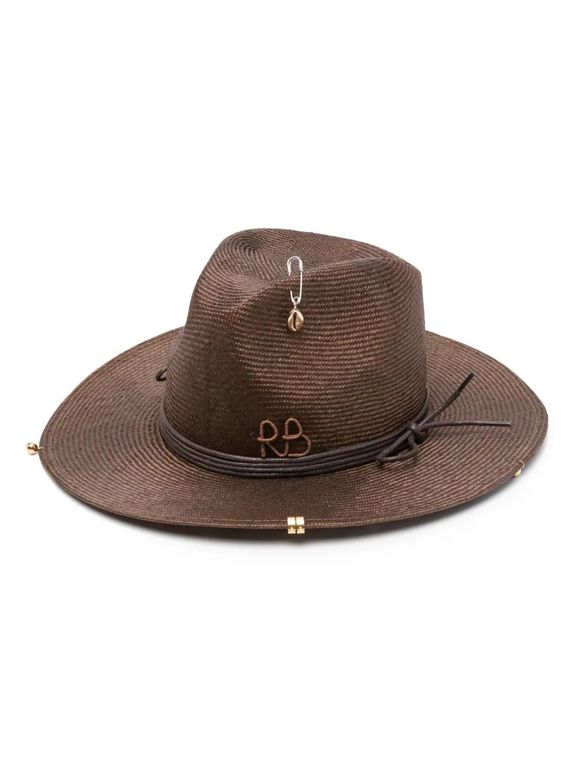 Chain Strap Straw Fedora Hat - Brown - Ruslan Baginskiy Hats