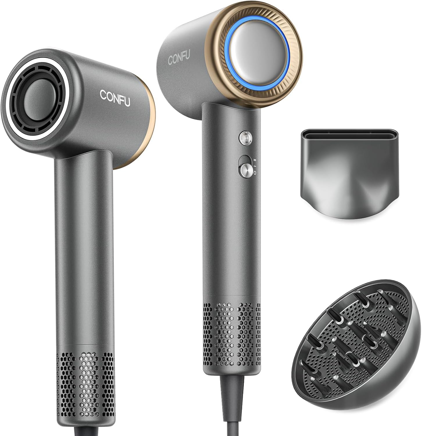 Hair Dryer, CONFU Ion Hair Dryer with Diffuser for Curly Hair, 110000 RPM Professional High Speed Blow Dryer, 1400W Diffuser Hairdryers Fast Drying