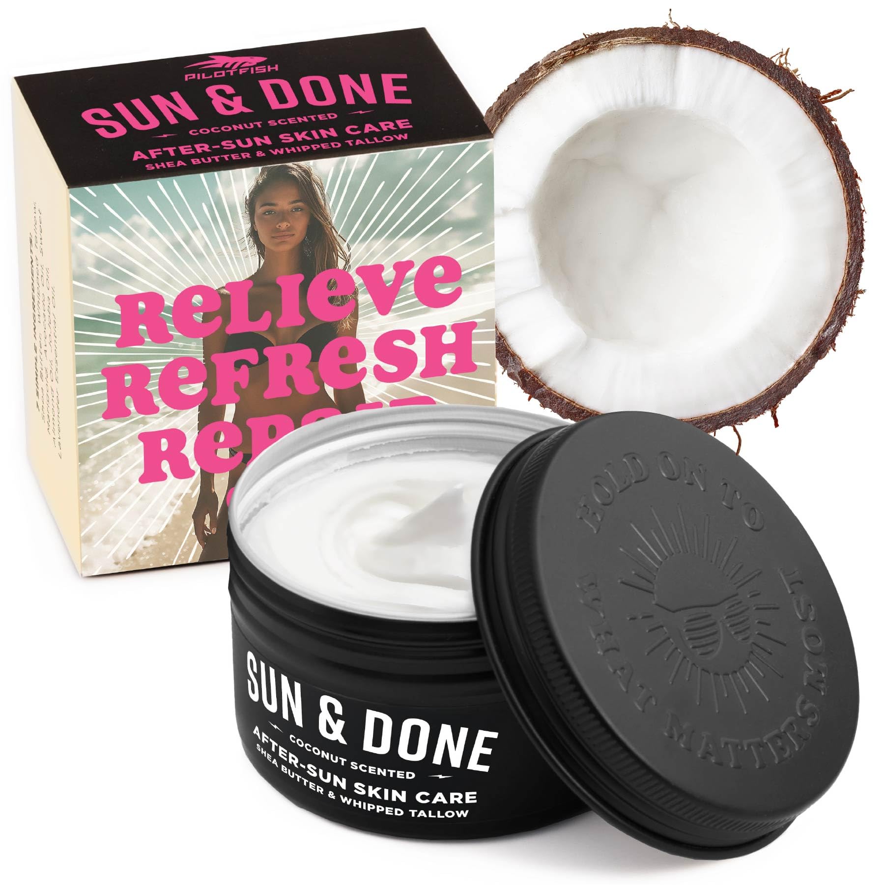 Sun & Done Whipped Beef Tallow for Skin - After Sun Care with 7 Simple Ingredients Including Shea Butter & Coconut | Sun Burn Healing Cream, After