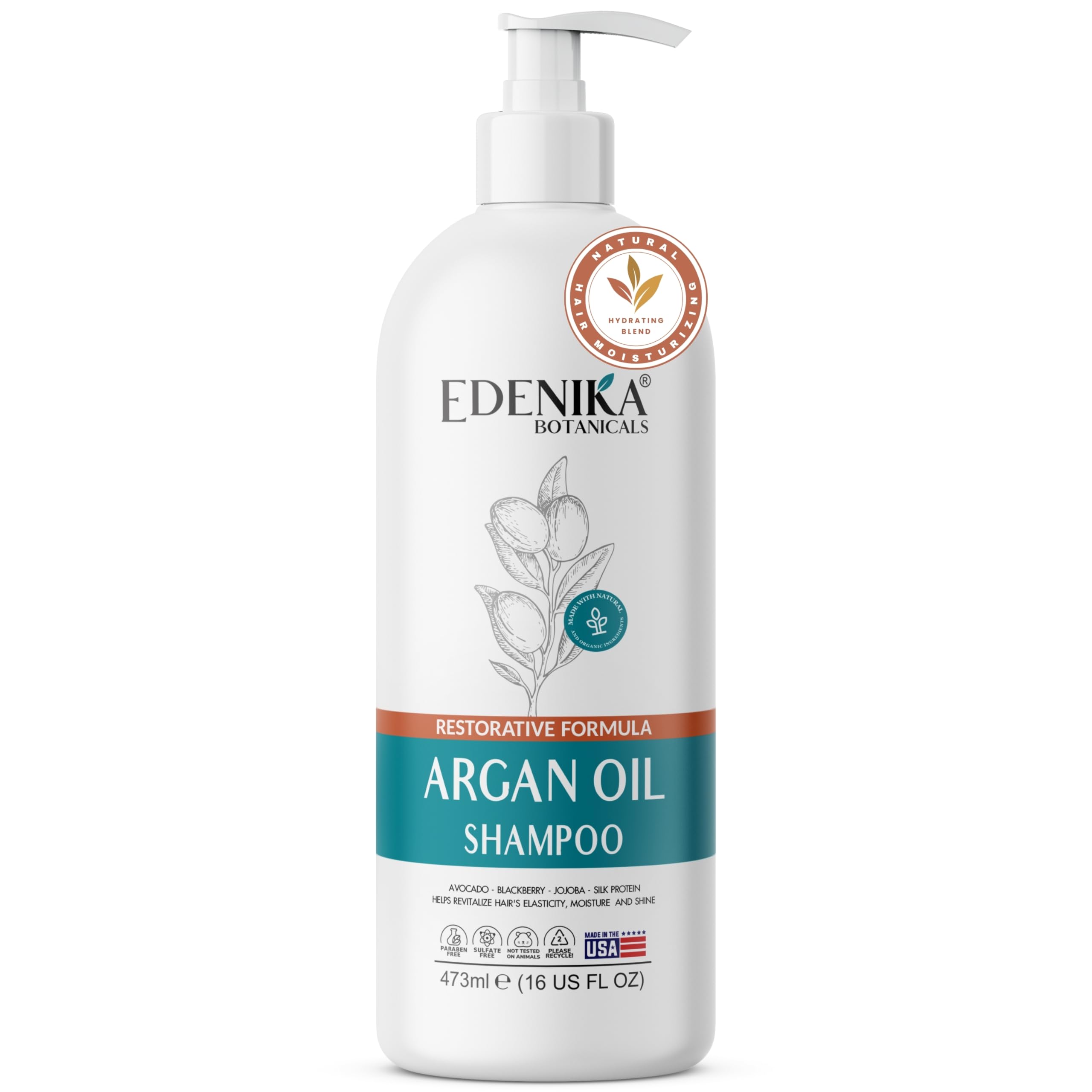 Edenika Botanicals Moroccan Argan Oil Shampoo with Biotin | Repairs Treated, Dry & Damaged Hair, Deeply Hydrating & Nourishing, Paraben & Sulfate Free