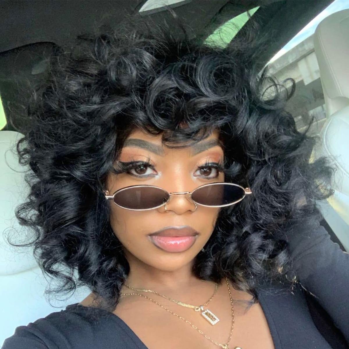 【Hairstyle Design】: Afro curly wig with bangs, the wave and curls are very full. You can make your favorite hairstyle by working with your fingers. It is bring you comfort and charming, let your beauty start from the beginning. 【Wig Quality】: Women's curly wig, Heat Resistant, Soft, Reusable