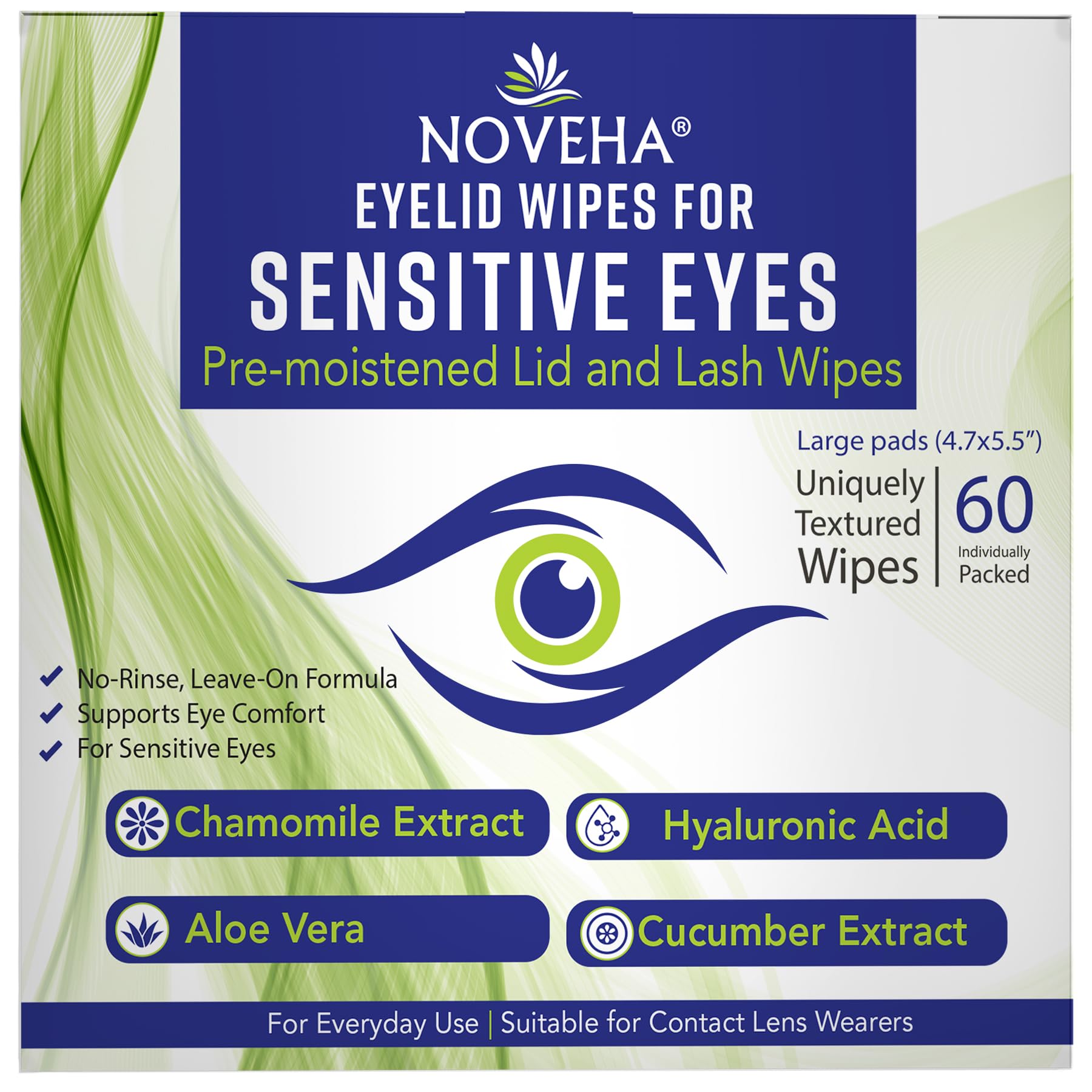 NOVEHA Eyelid Wipes - For Delicate Lashes and Eyelids - With Hyaluronic Acid, Chamomile, and Aloe Vera - Individually Wrapped Pre-moistened Pads (60