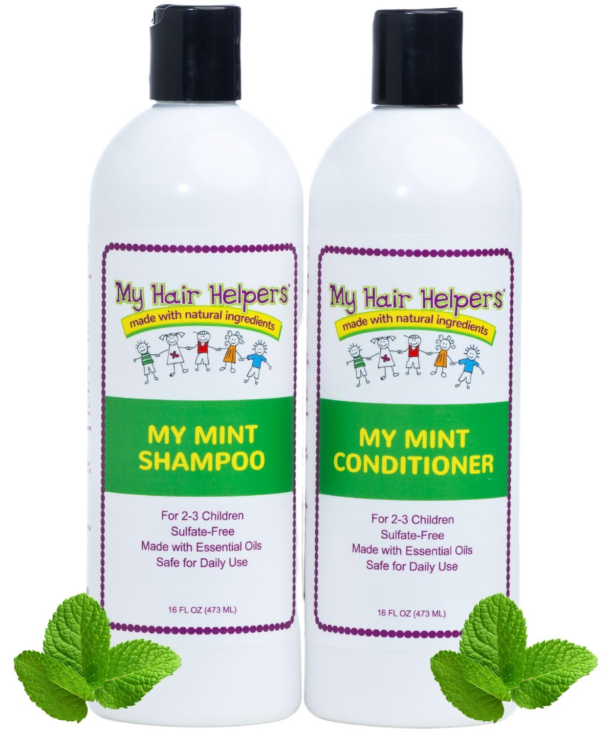 My Hair Helpers Anti Lice Prevention Shampoo & Conditioner Set for Kids, Mint, Neem, Rosemary, Stay Nit-Free, Works on 2-3 Children, 16 Ounces Each