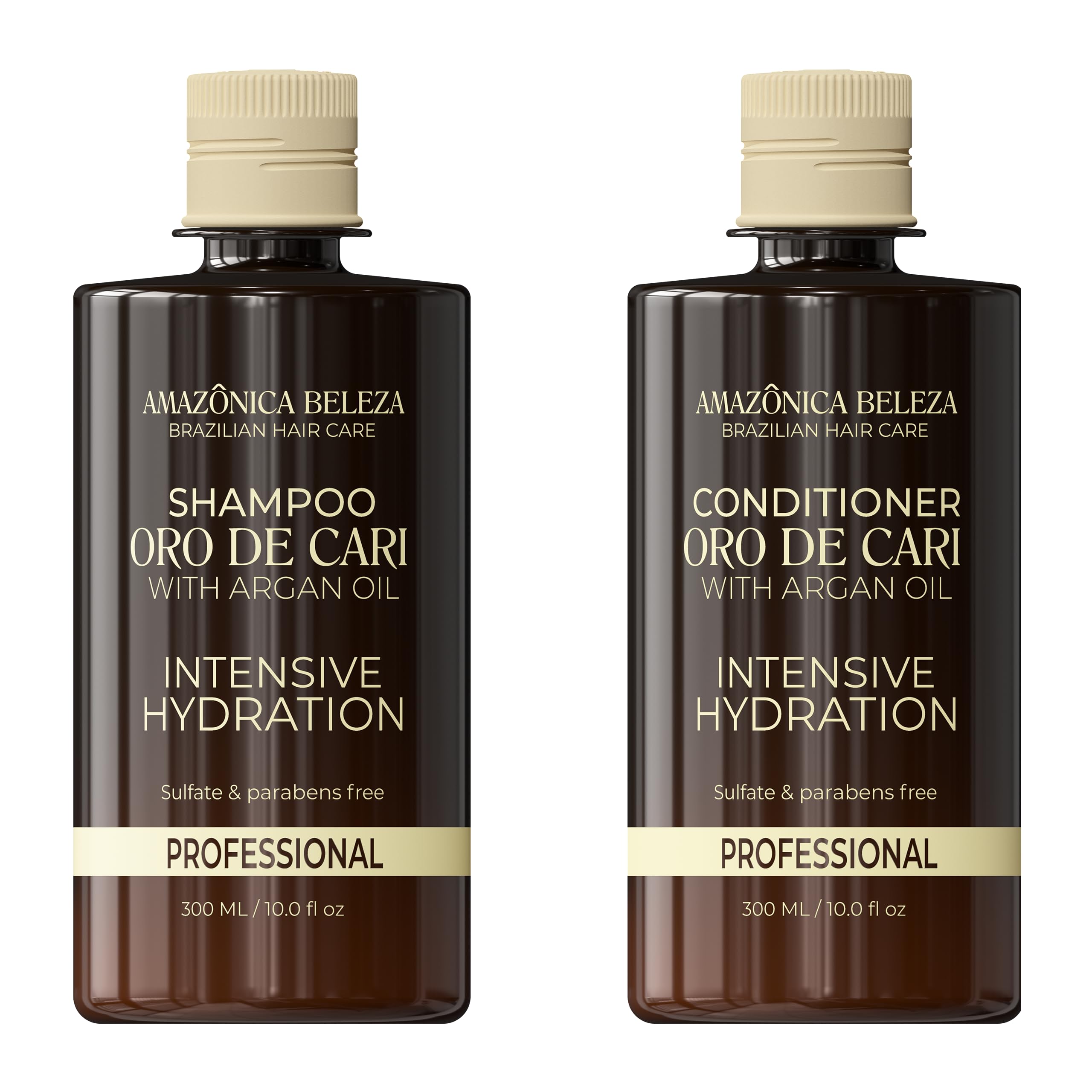 AMAZONICA BELEZA Oro de Cari Shampoo and Conditioner, Intensive Hydration for Dry Hair with Argan Oil and Vitamin E, Professional Line, 10 Oz