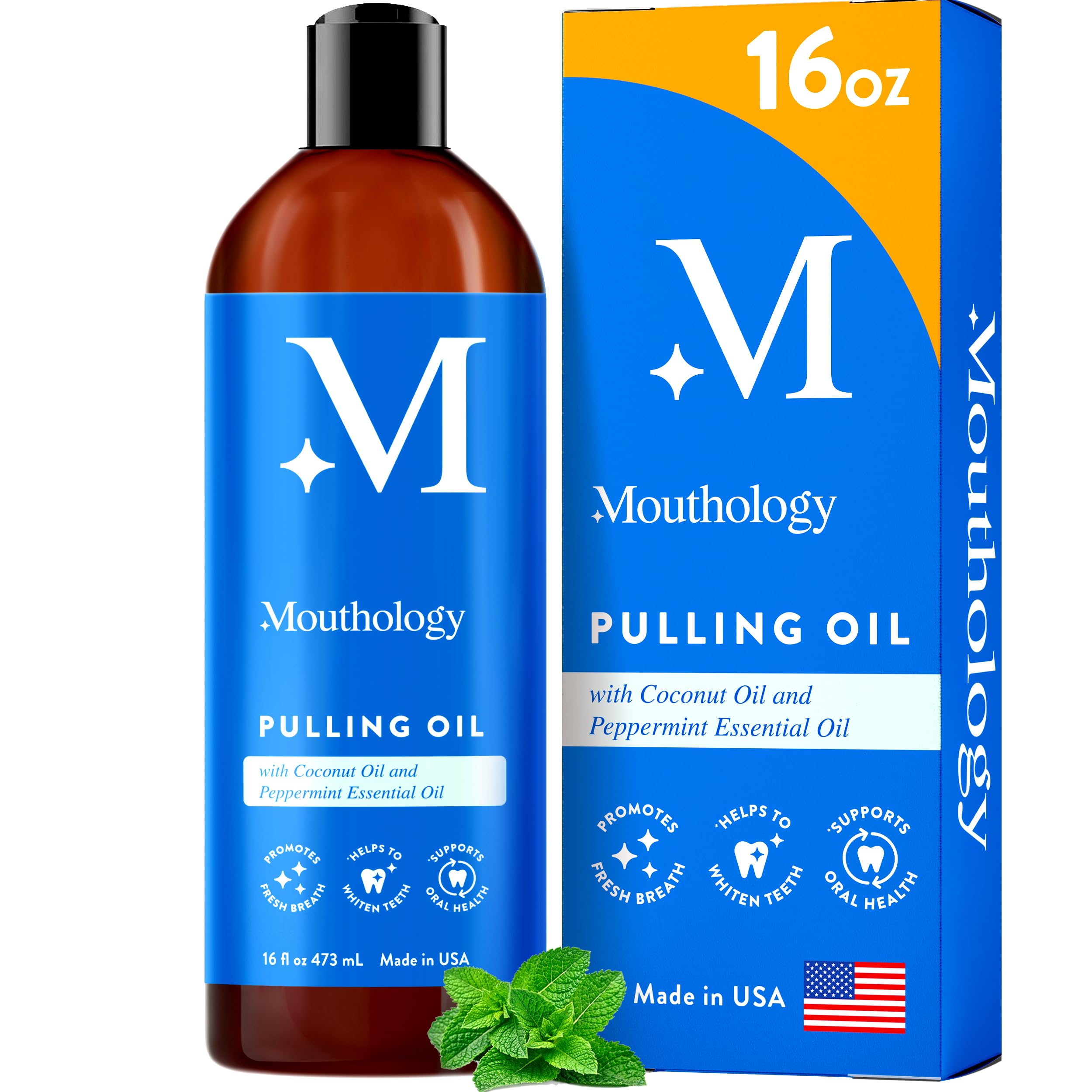Mouthology Coconut Oil Pulling for Teeth and Gums 16oz (Made in USA), Whitening Pulling Oil Coconut Mint Mouthwash for Fresh Breath Ayurvedic Oil