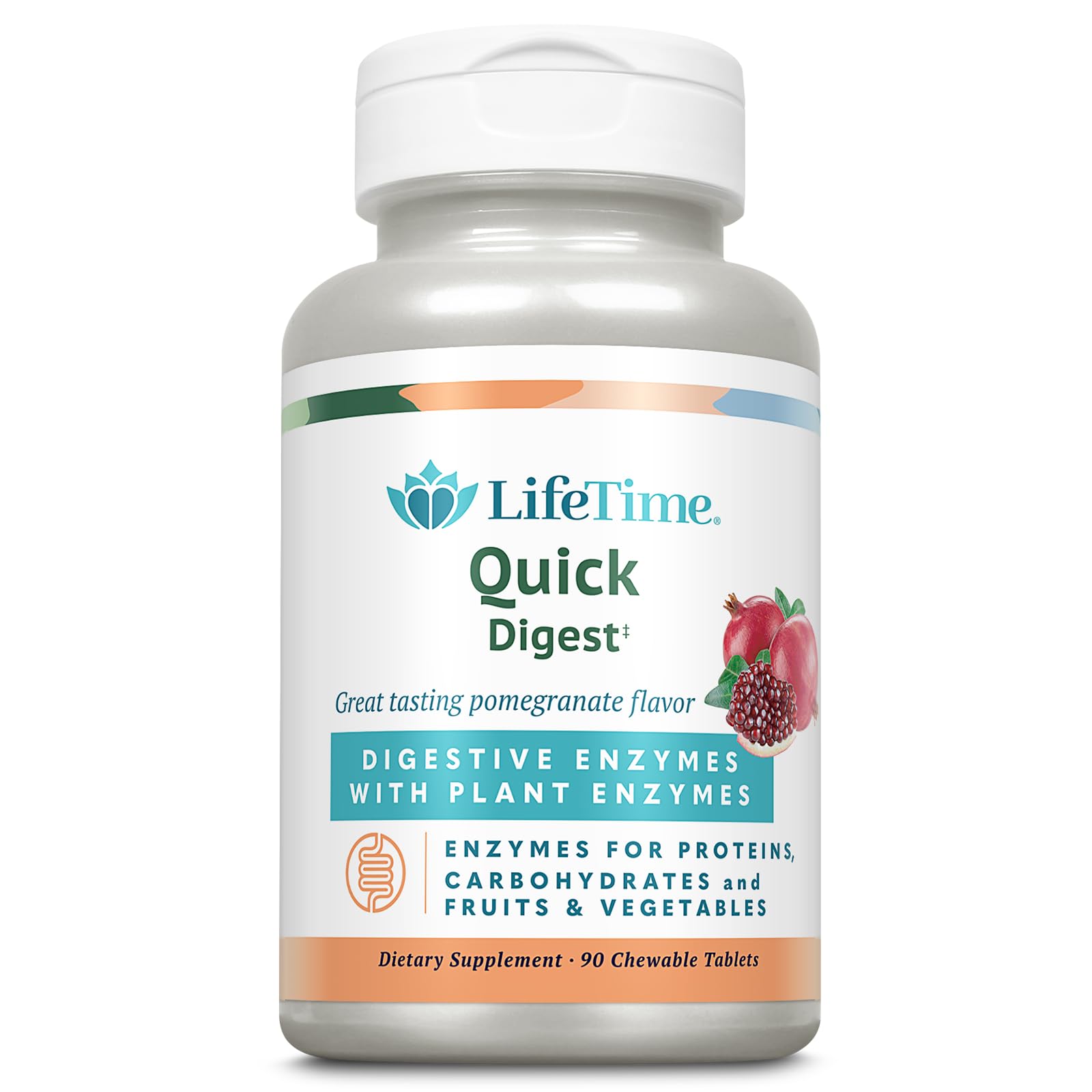 Digestive Enzymes for Women and Men β LifeTime Quick Digest tablets contain the plant-based lipase enzymes, amylase enzyme, papain, cellulase, and papaya enzymes for digestion. Papaya Enzymes Chewable β Our delicious chewable papaya enzymes for digestion are made with great-tasting pomegranate f
