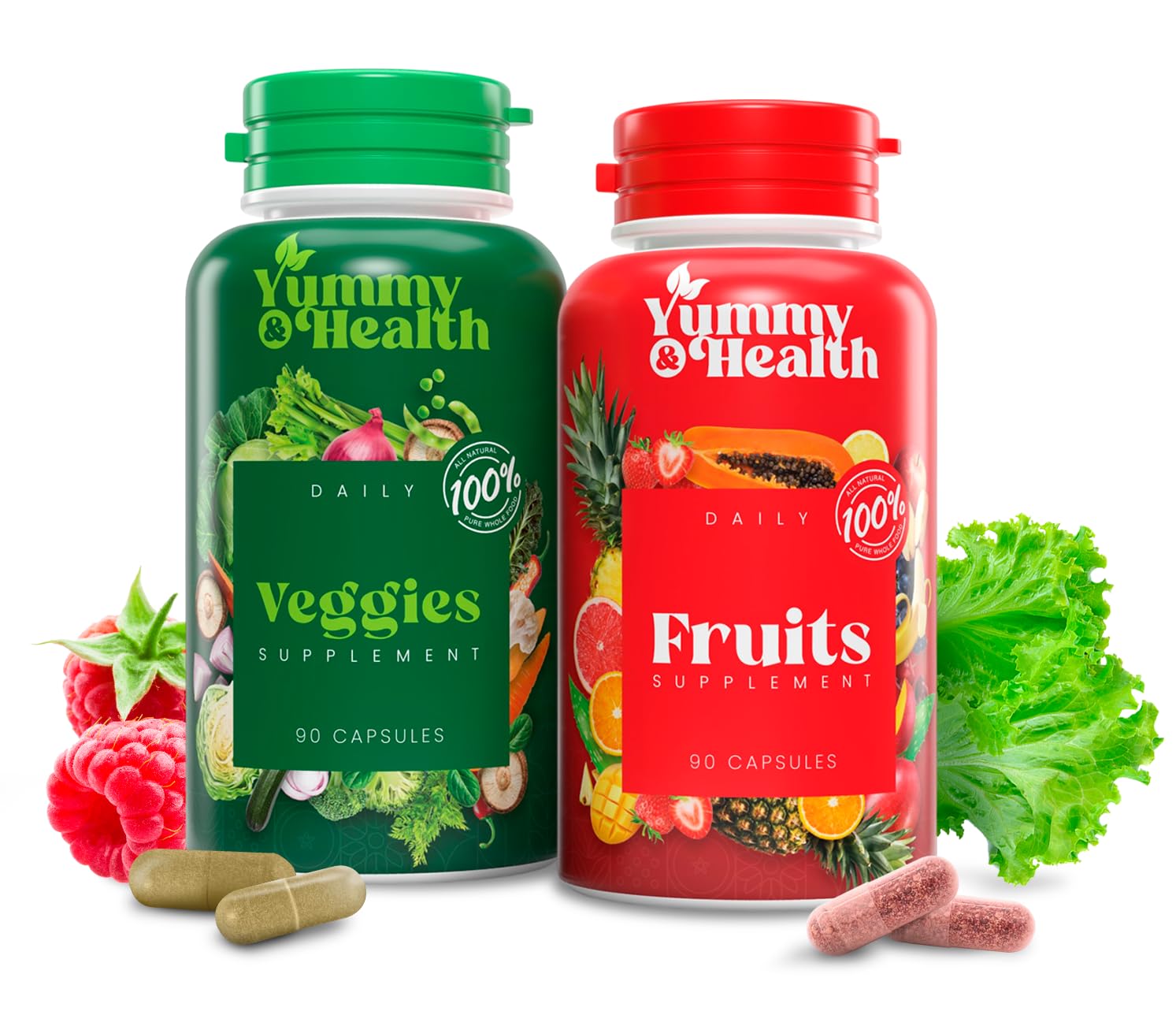 Yummy & Health Fruits & Veggies Capsules β 33+ Whole Superfoods from Fruits & Vegetables | 90 Fruit + 90 Veggie Capsules | Vegan, Non-GMO, Gluten-Free