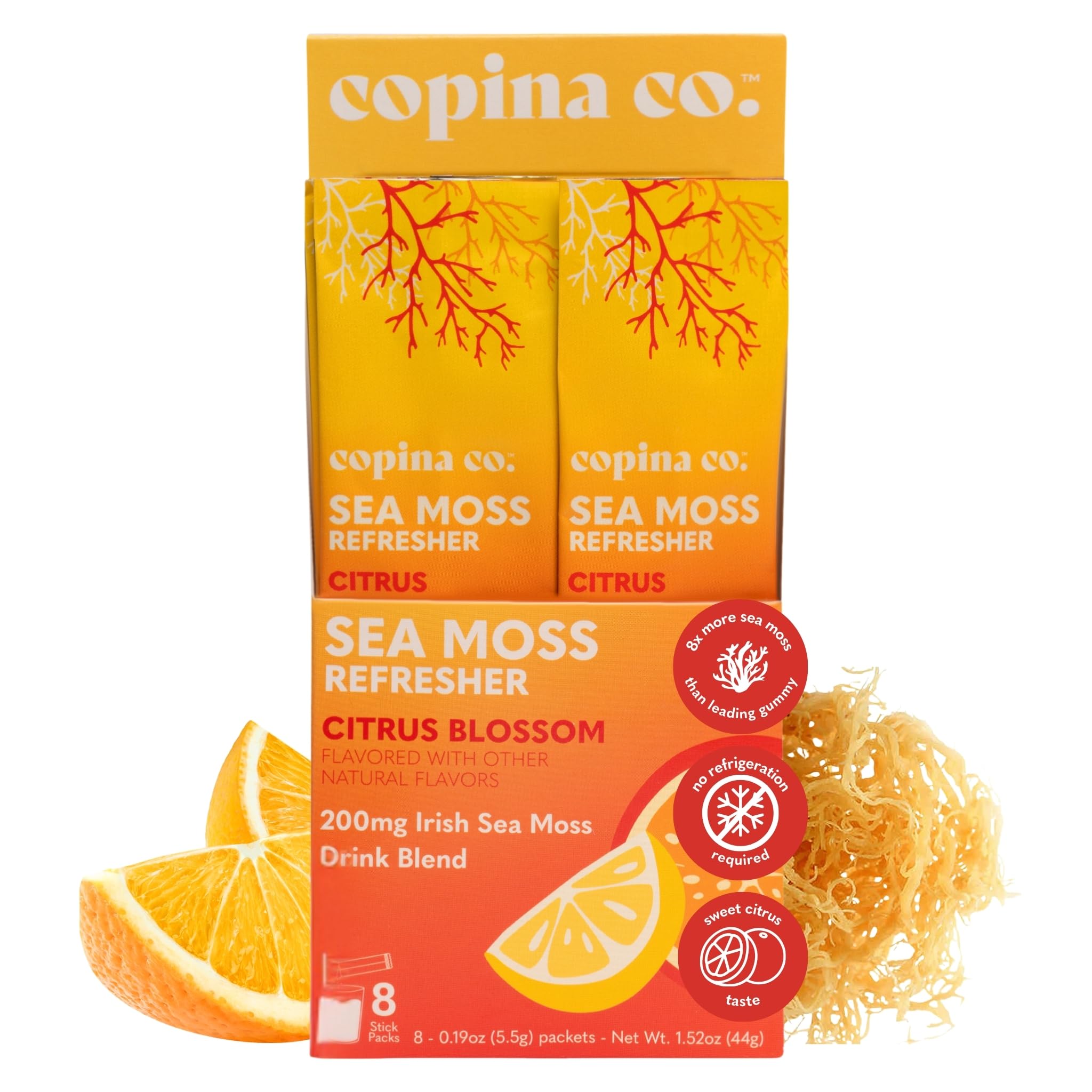 Organic Irish Sea Moss Powder - 200mg Packets - Citrus Blossom Flavored Seamoss Drink with Electrolyte-Rich Coconut Water for Natural Hydration,