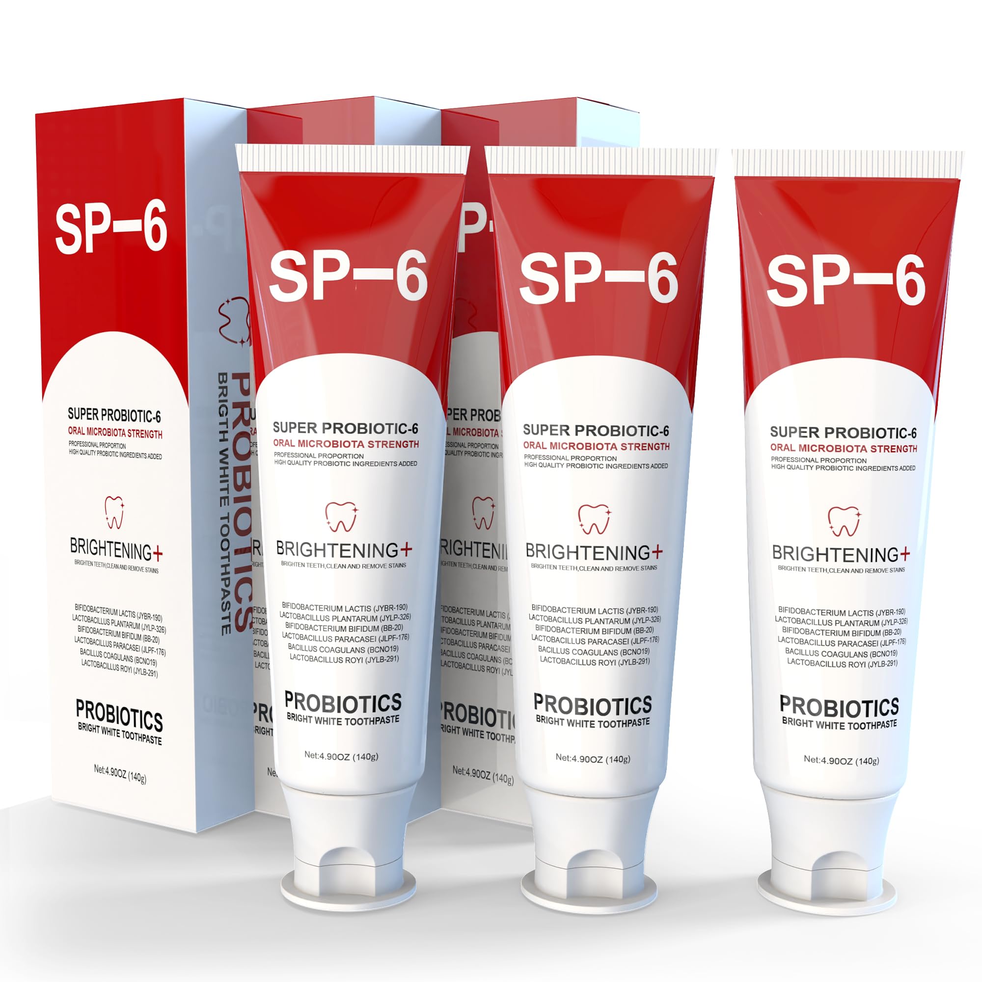 SP-6 Probiotic Whitening Toothpaste for Teeth Whitening/Brightening & Fresh Breath, 6 Probiotics Formula for Gum Health, Fluoride-Free, Minty Fresh