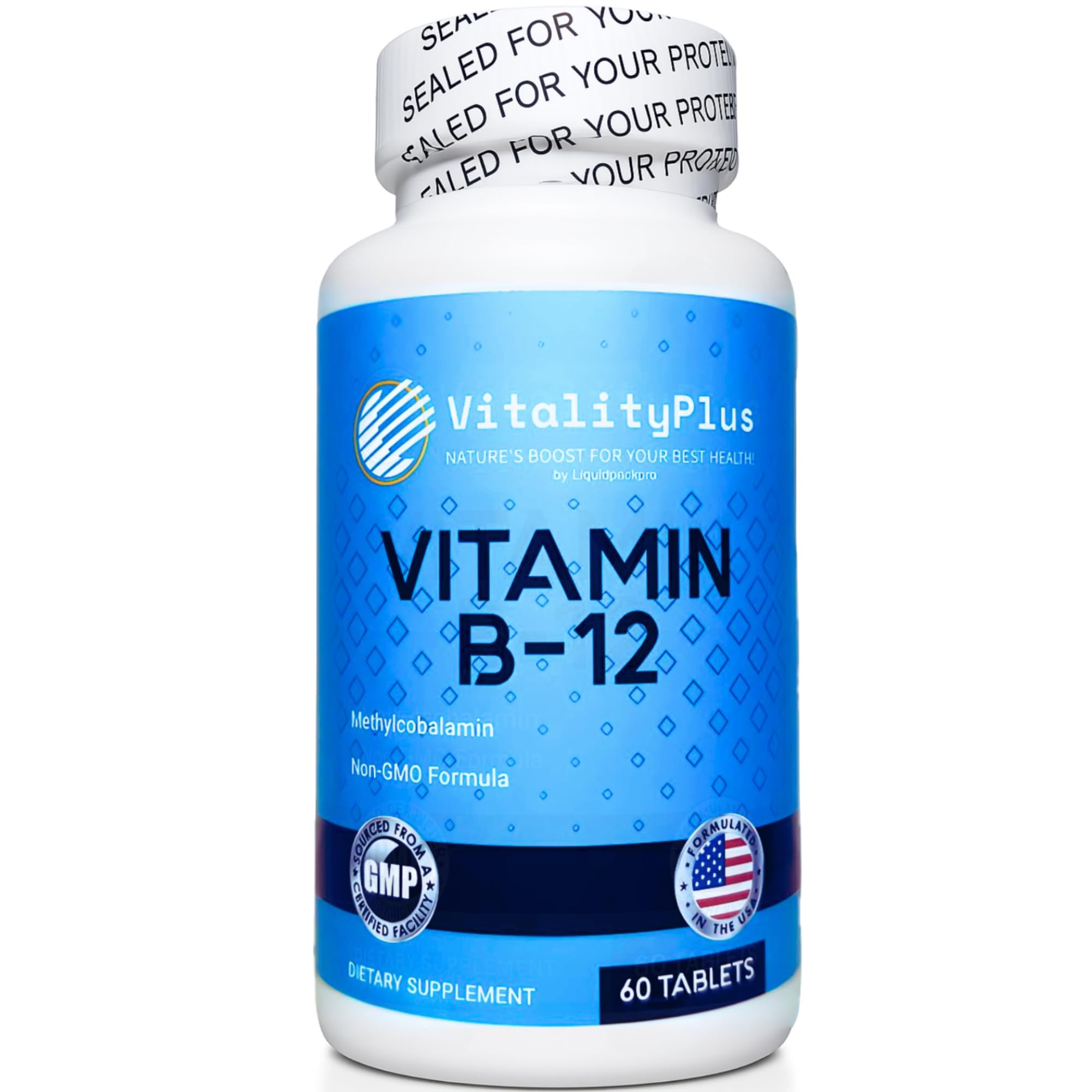 LIQUIDPACKPRO Vitamin B12 5000 mcg Methylcobalamin - Made in USA - Supports Energy, Metabolism, and Nervous System Health – Vegan, Non-GMO, 60 Tablets