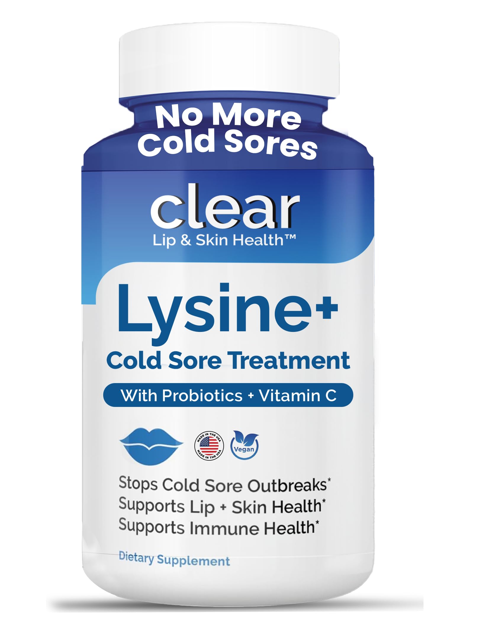 Lysine Cold Sore Treatment for Lips with Pre-Probiotics & VIT C | 1 Month Supply | Supercharged Lysine Capsules with Rhamnosus & Acidophilus for Cold