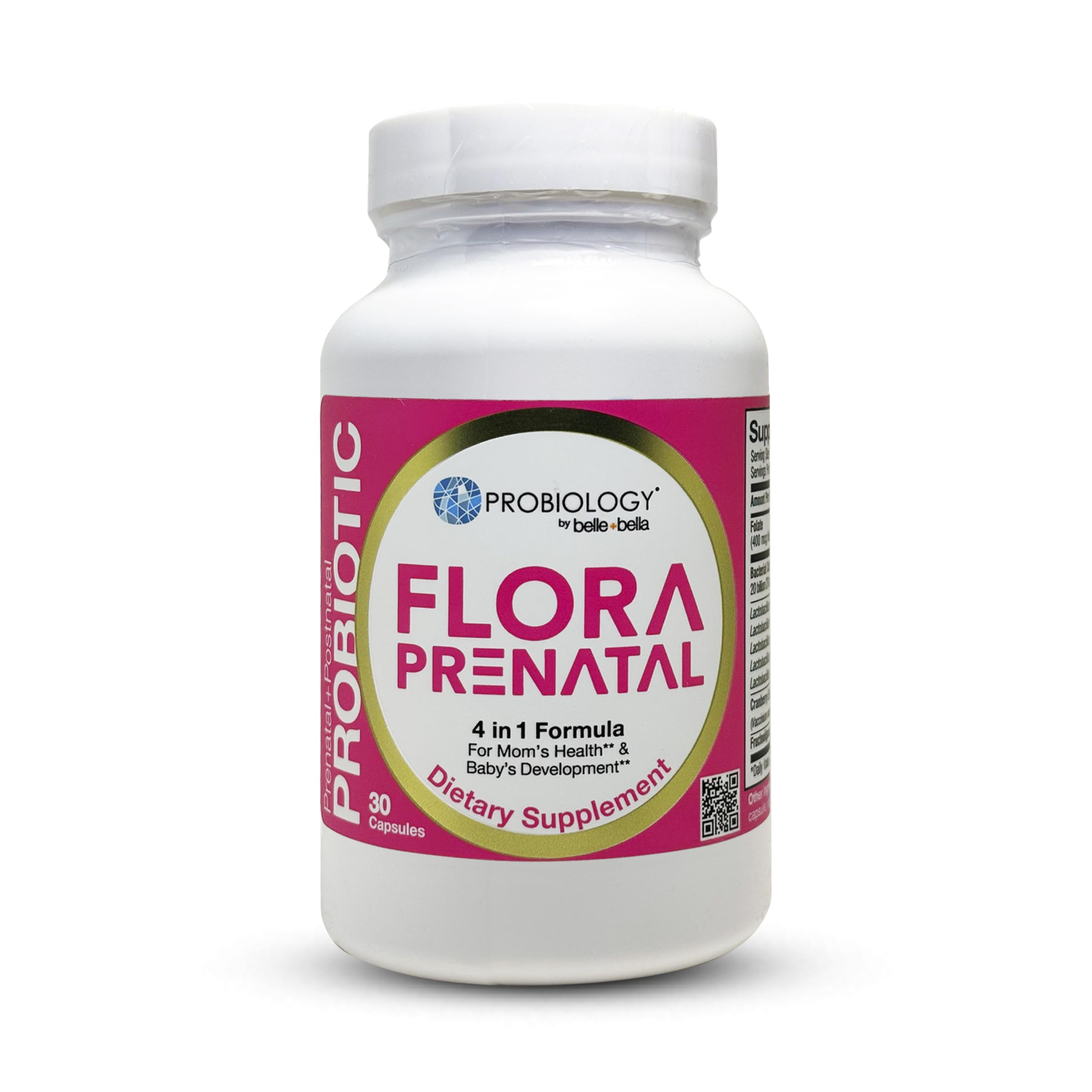 belle+bella Probiology Flora Prenatal Capsules - Dual Action Probiotic & Prebiotic Supplement with Folic Acid for Prenatal & Postnatal Women - Non-GMO