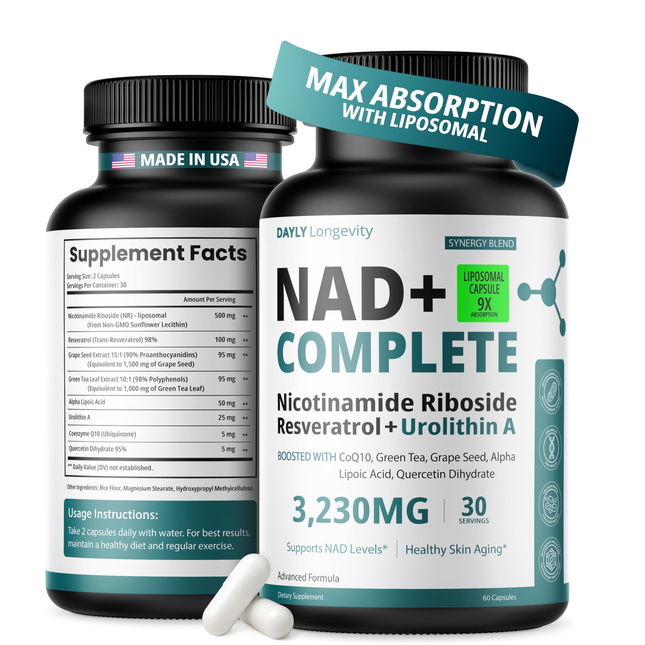 DAYLY Liposomal NAD+ Supplement — Nicotinamide Riboside with Urolithin A, Resveratrol & CoQ10 – NAD Plus Formula for Men & Women – Energy, Cellular
