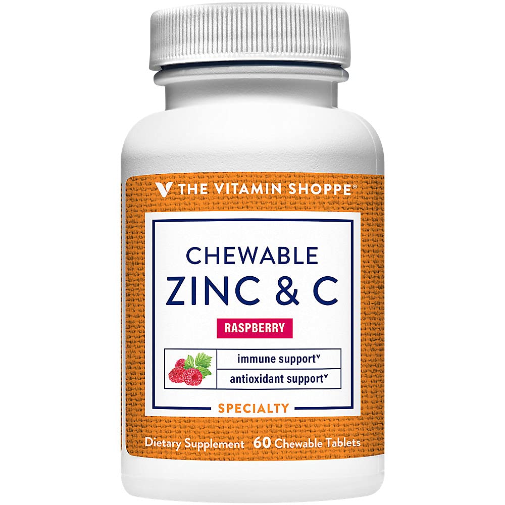 The Vitamin Shoppe Chewable Zinc with Vitamin C - Immune Defense | Raspberry Flavor | 60 Chewable | Great Taste