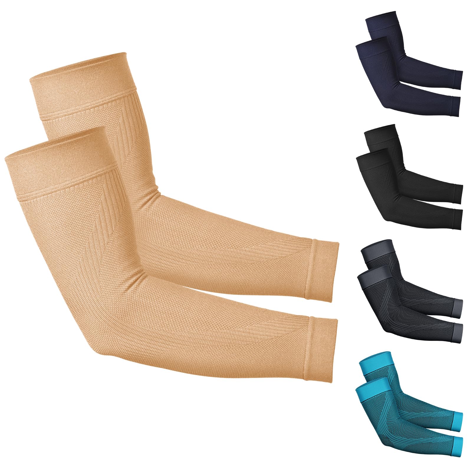 Nylon 80%, Spandex 20% Imported Graduated Compression for Perfect Support: Firm 20-30 mmHg graduated compression arm sleeves for elbows, arms, and forearms, offer targeted compression and improved blood circulation, relieve swelling, also have heating effect for muscular recovery; Offer optimal musc