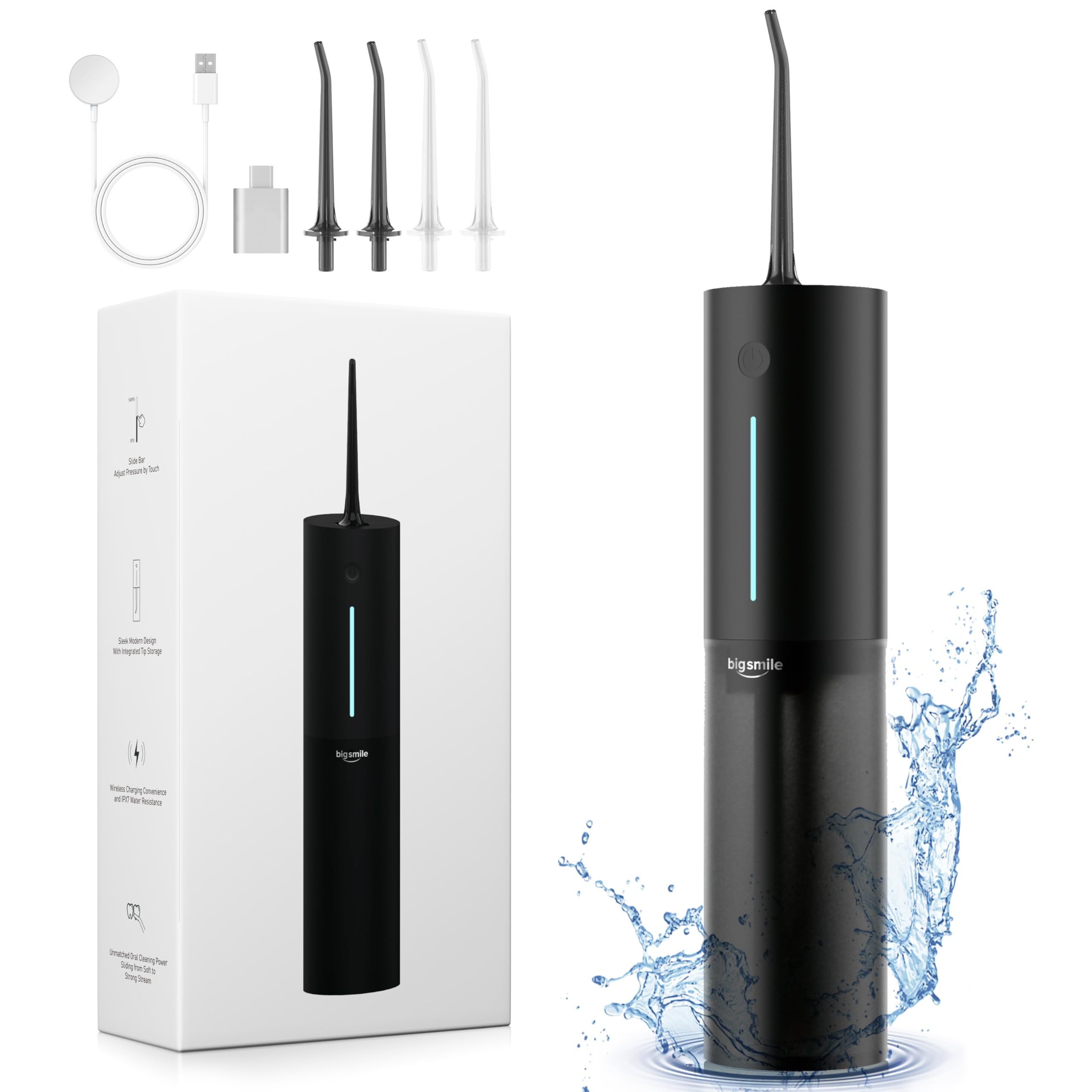 3 Modes & 8 Gear: Cordless water flosser have three different modes - gentle, normal and pulse - to meet your oral hygiene needs, and the ultra-fine nozzle suitable for cleaning braces, dental calculus, gums, etc. Each mode has 8 gears.You can easily find the most suitable intensity by touching the