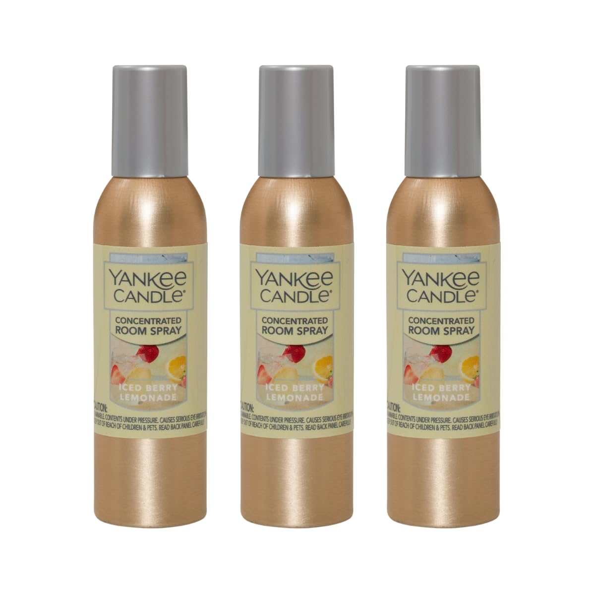 Yankee Candle Concentrated Air Freshener Room Spray, Odor Eliminator for Home, Bathroom, Iced Berry Lemonade, 1.5 Oz (Pack of 3)
