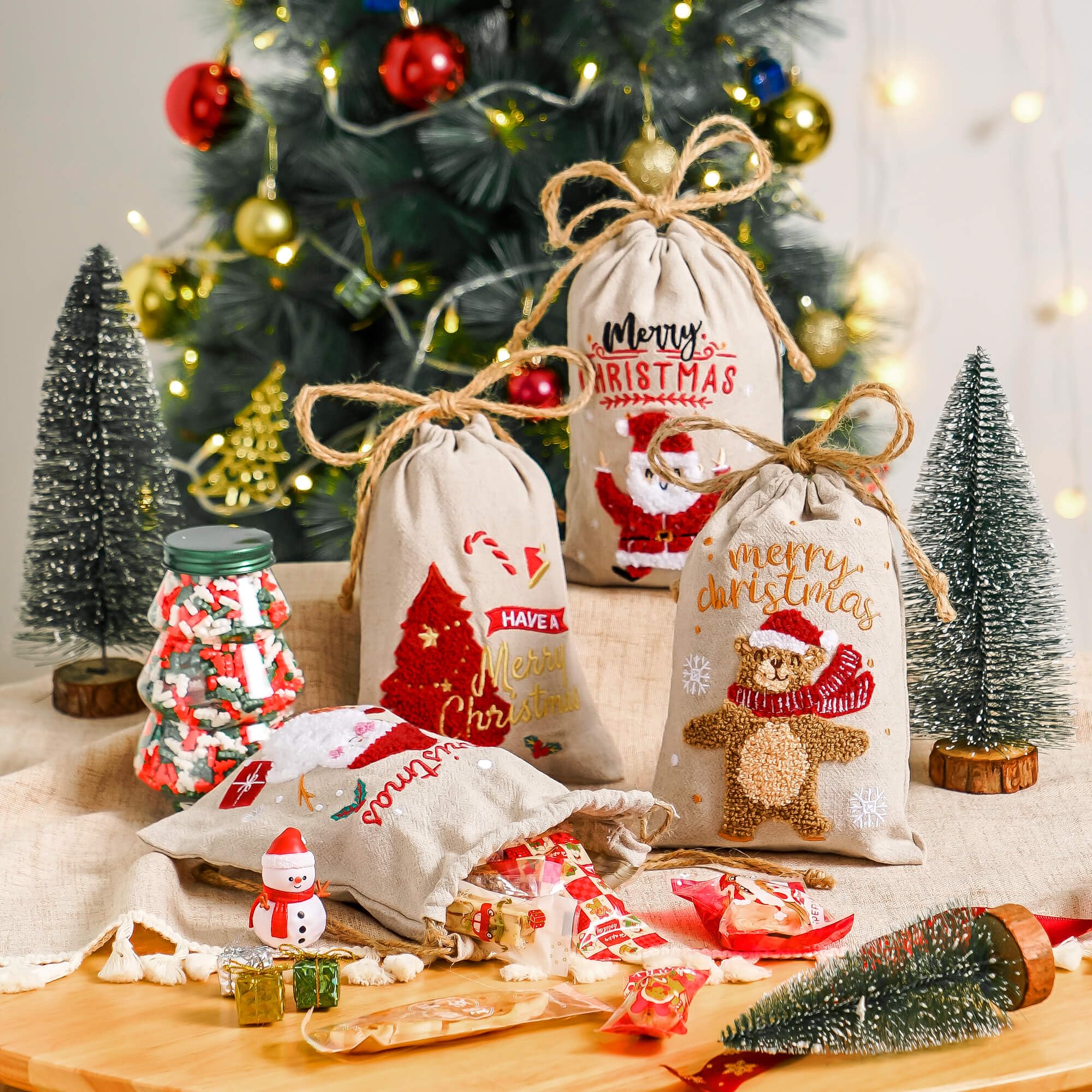 Unparalleled in Design - Evoking vibrant Christmas celebrated for centuries in the US. Our Christmas gift bags capture the timeless cue of Christmas in nature.(Pack of Four different Patterns included) 3D Embroidery - Meticulously tailored with inventive Three-dimensional embroidery, Each piece of o
