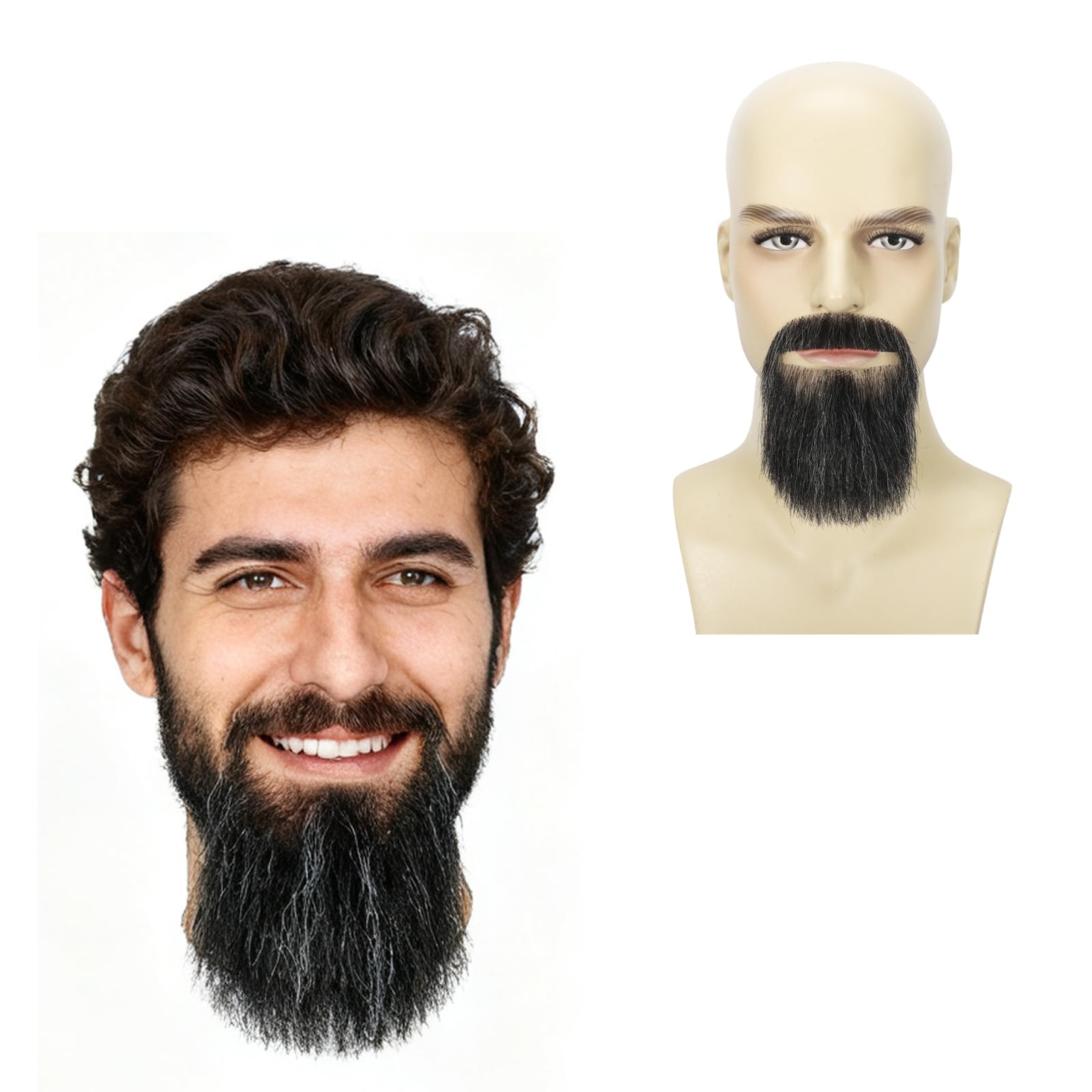 Material: The full beard are 100% made of real human hair, soft, natural-looking, and friendly to skin, making it easy to blend in with your own facial hair for a seamless appearance when when fitted correctly. The men mustache and beard mimic natural hair growth patterns, with individual strands an