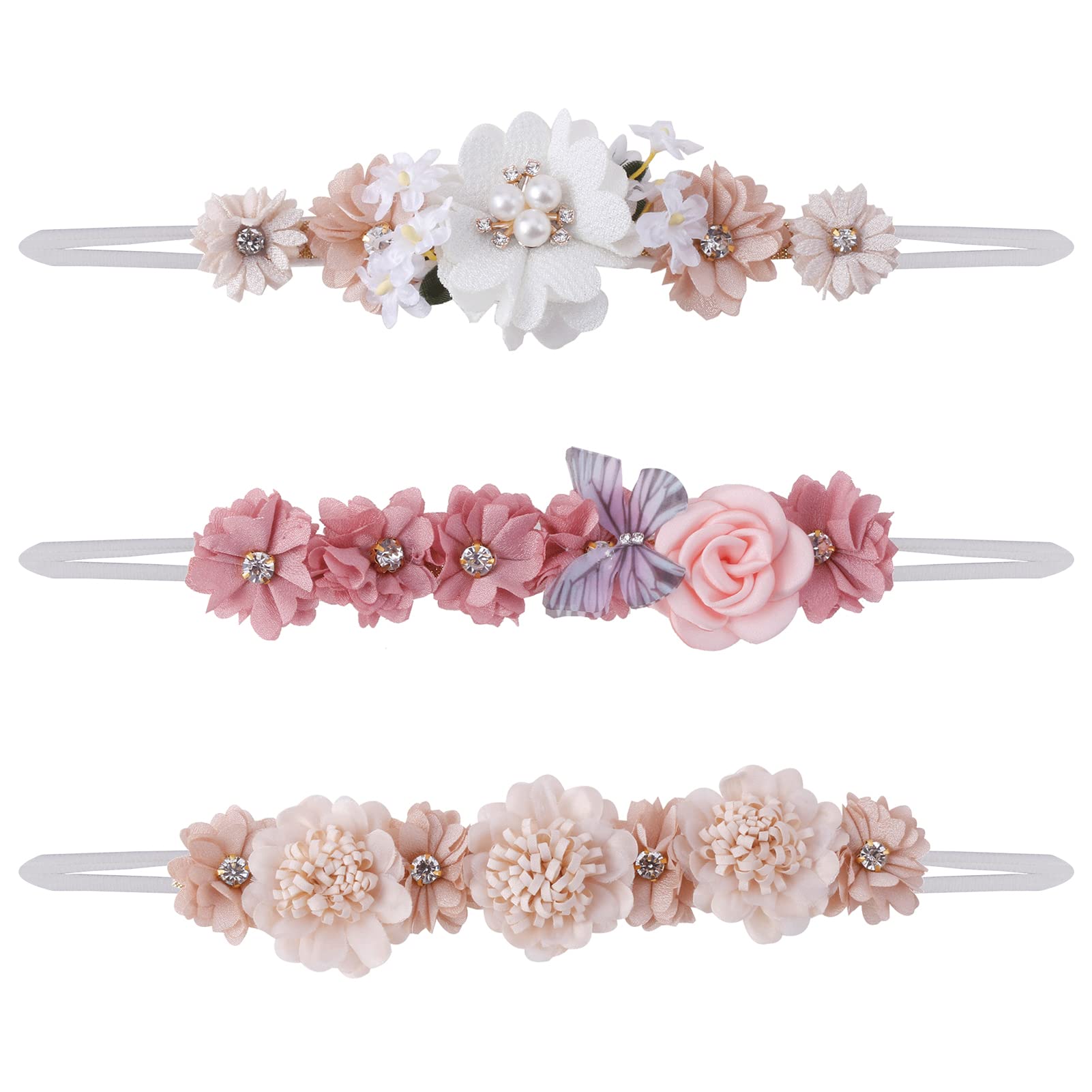 BFNAAgirl Flower Headband for Baby Girl Elastic Baby Floral Headbands Crown Hairbands Hair Accessories for Newborn Infant Toddlers Kids 3pcs/set