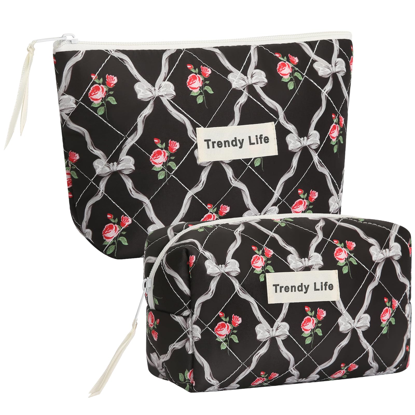 HAOGUAGUA 2 Pieces Makeup Bag, Small Large Quilted Cosmetic Bag, Travel Floral Make Up Toiletry Organizer Bag for Women Girls (2PCS STYLE A-5)