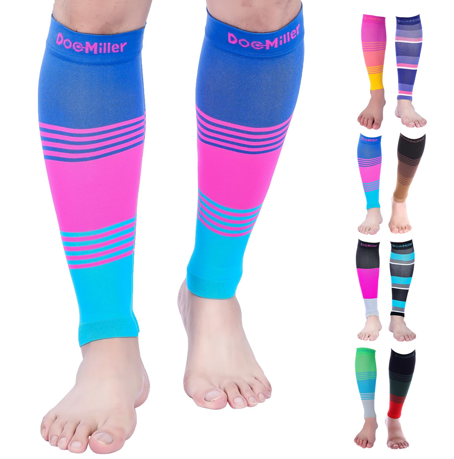 Doc Miller Compression Calf Sleeve for Men & Women, 20-30 mmHg Graduated Support, Knee High, Running, Shin Support, Calf Sleeves, Striped Design, 1