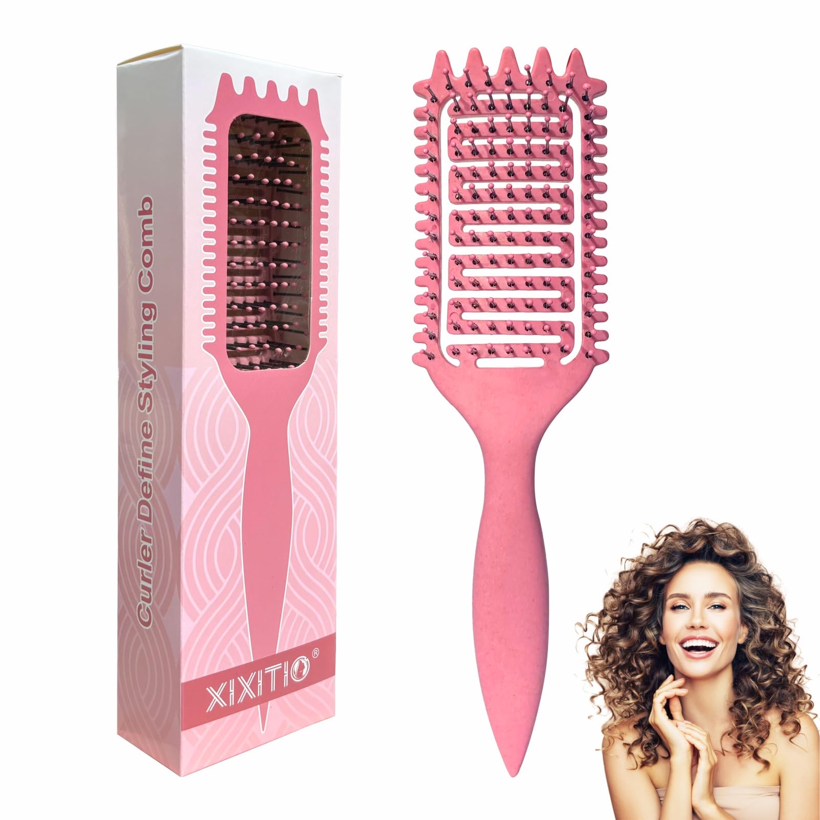 Curly Hair Brush for Curly Hair, Curl Defining Brush for Styling and Defining Curls for Women and Men, Wet or Dry Hair (Pink)