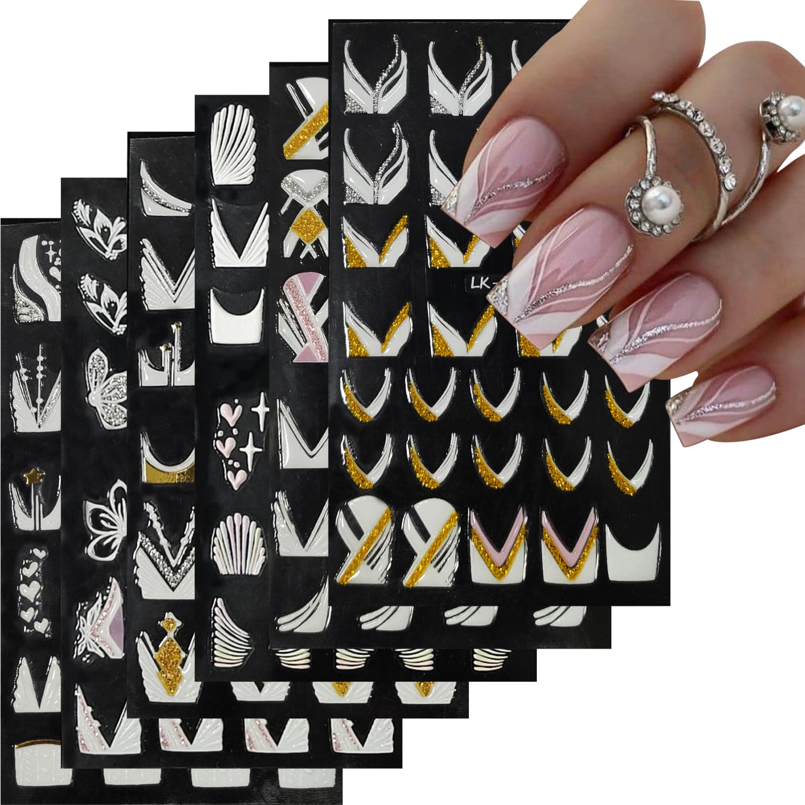YOSOMMK Nail Art Stickers Decals 6 Sheets French Nail Decals 3D Self-Adhesive Nail Supplies Accessories Colorful Nail Decoration for Women French Nail