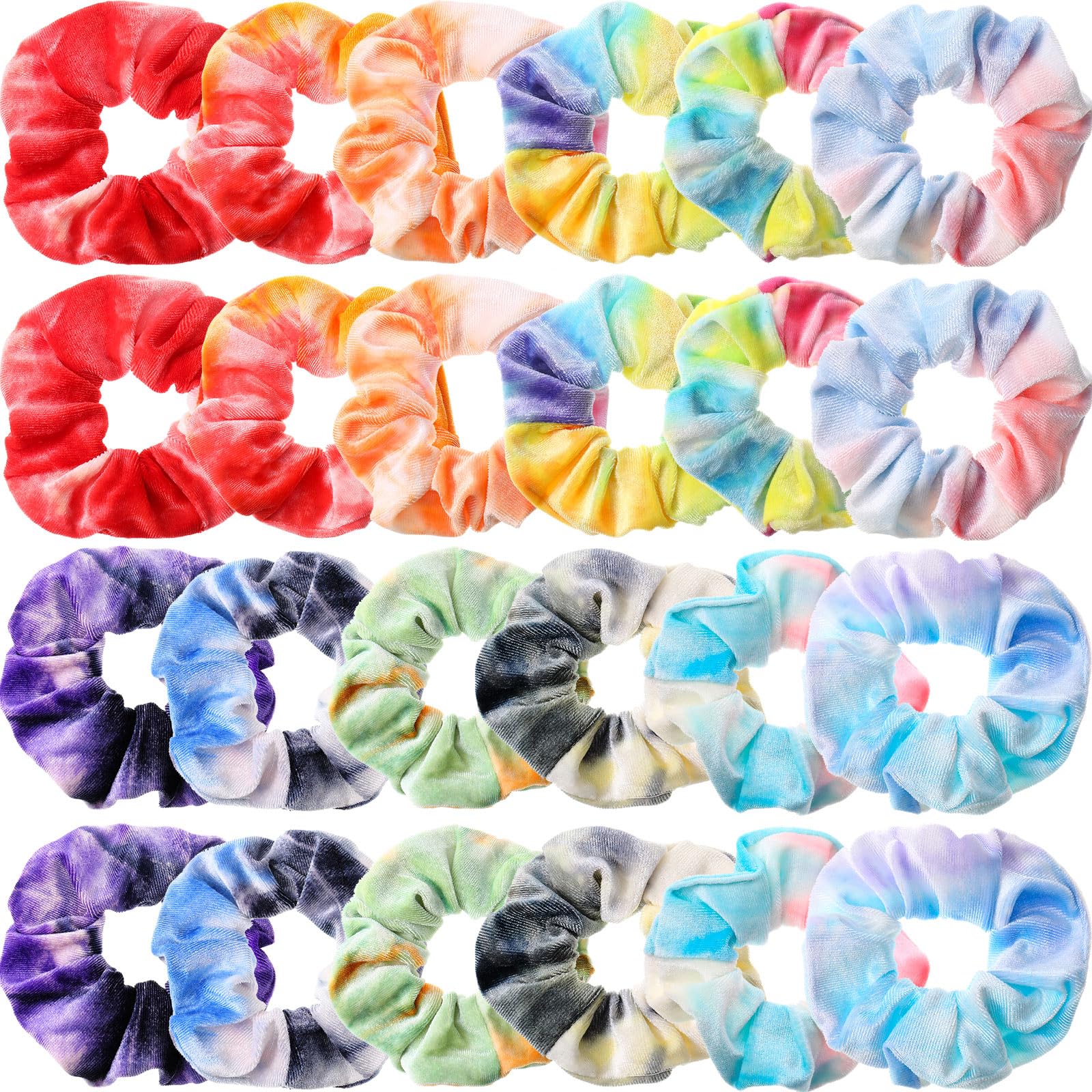Tatuo 24 Pieces Rainbow Hair Scrunchies Elastic Bands Scrunchy Colorful Hair Ties for Women Girls Gymnastics Birthday Party Favors, Large(Bright