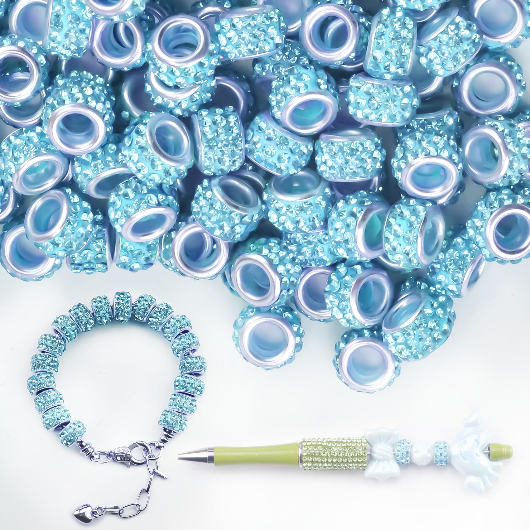 Rhinestone Spacer Beads:Each pack includes 100pcs of 11mm large hole rhinestone spacer beads, perfect for jewelry making, DIY crafts, and beadable pen decorations. High-Quality Sparkly Rhinestones:Made with European-style crystal rhinestones, these beads feature a smooth and shiny surface that adds