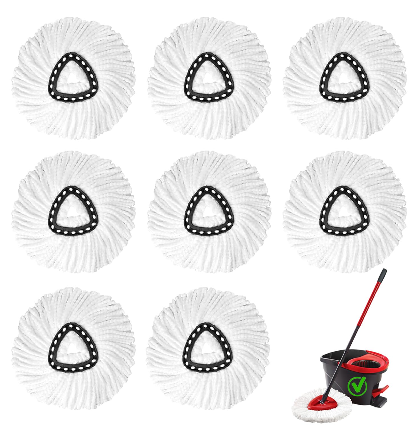 8Pack Spin Mop Replacement Heads,Spinning Mop Replace Head for Floor Cleaning, 100% Microfiber Mop Head Replacement Compatible with Triangle Spin Mop