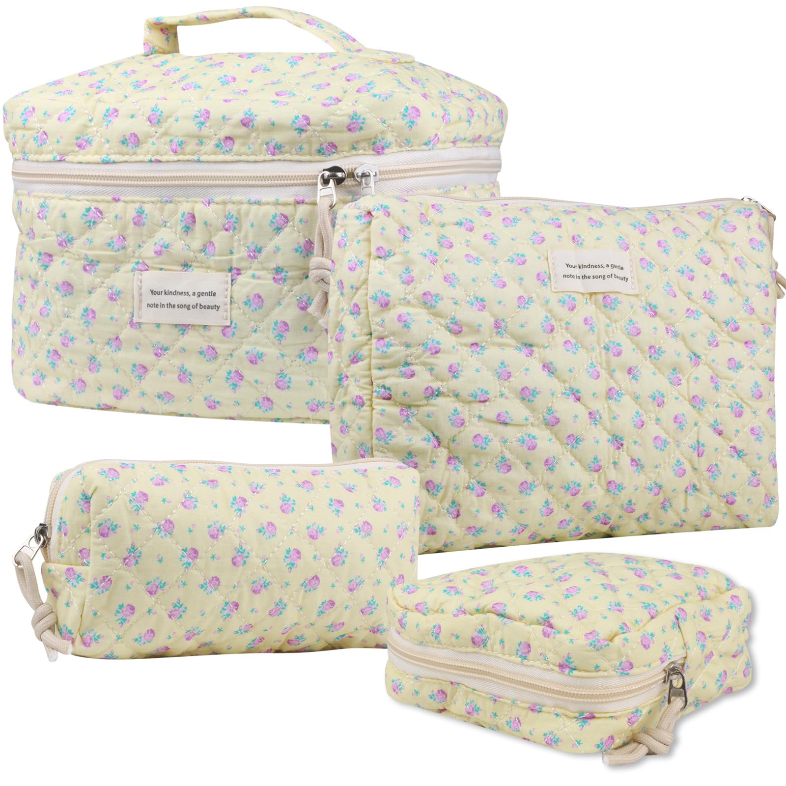 NATINSA Cute Makeup Bag for Women(4 Pcs), Travel Cosmetic Bags, Quilted Coquette Aesthetic Floral Toiletry Organizer Bag (44 - Purple Rose/4PCS)
