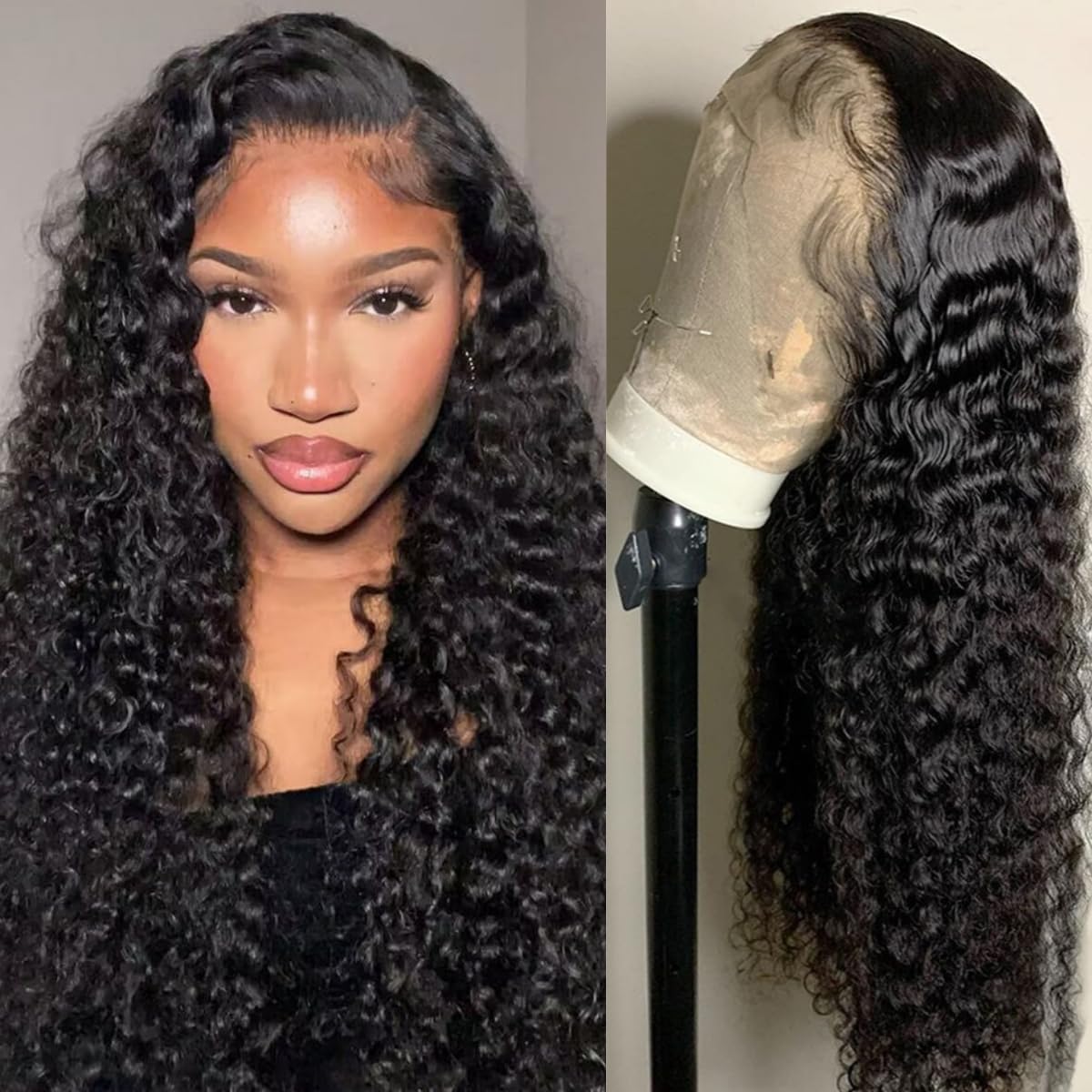 Deep Wave Lace Front Wigs Human Hair 180% Density 13x4 Deep Curly Lace Frontal Wigs Hd Transparent Lace Wig 100% Virgin Human Hair Glueless Wig with