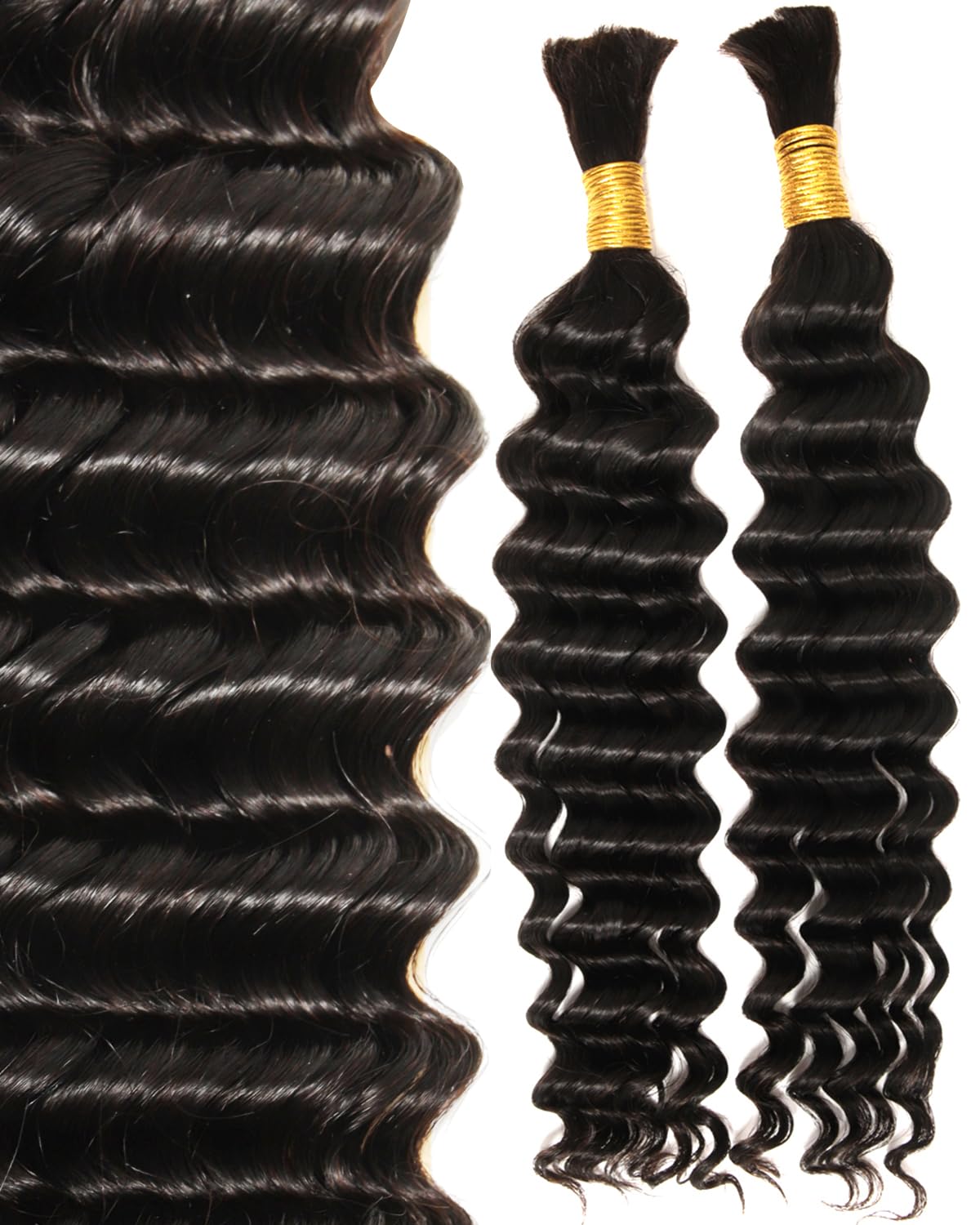BEEOS Boho Human Braiding Hair Bulk 100g 22 Inch, Deep Wave Boho Hair for Braiding Curly Bohemian Knotless Braids 2 Bundles Per Pack #1B Natural Color