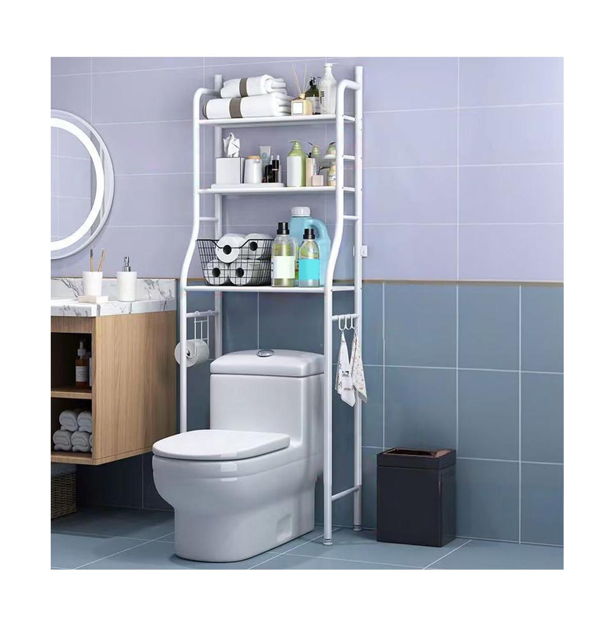 Over The Toilet Storage Shelf, Freestanding Bathroom Organizers and Storage Over Toilet with Paper Holder Towel Hooks Bathroom Organizer