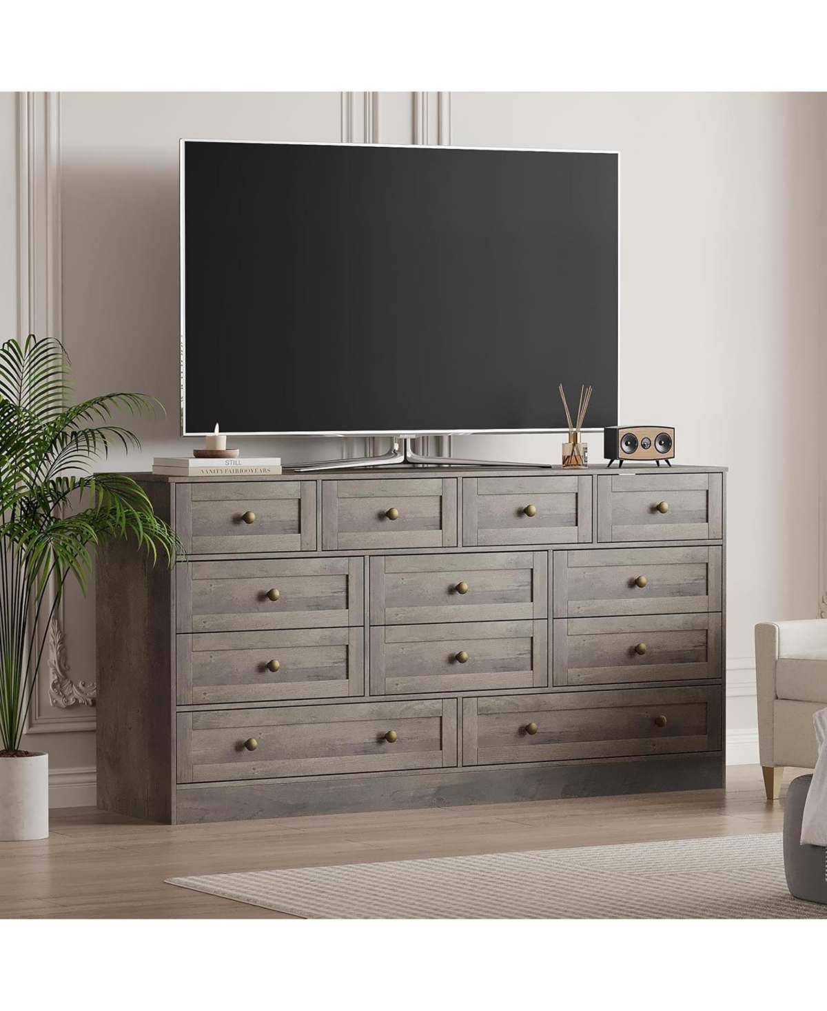 gaomon 12-Drawer Wooden Bedroom Dresser, Wide Chest with Storage Organizer & Tv Stand for 65" Tv, Clothes Storage for Living Room, Hallway, 61"x15.75"
