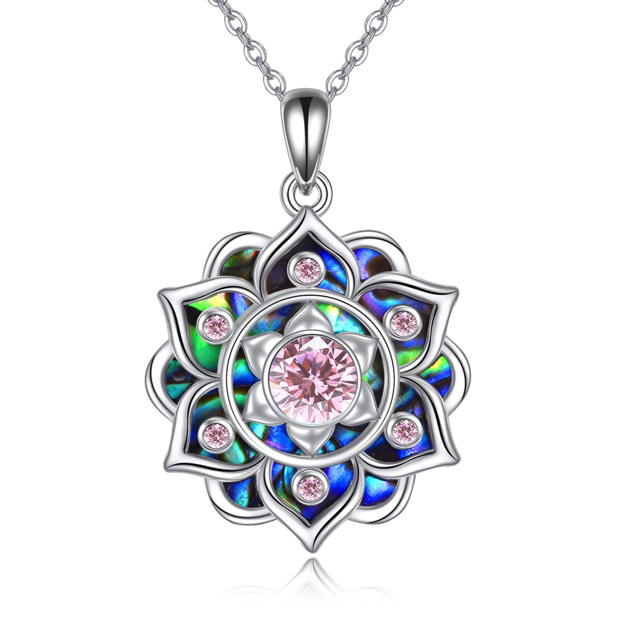 AXOMY Lotus Necklace 925 Sterling Silver Birthstone Abalone Shell Pendant Necklace Birthday Yoga Lotus Jewelry Mothers Gifts for Women Mom Grandma