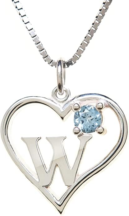 Silver Sterling Necklace Initial Letter A-Z Birthstone for Women – Personalized Custom Jewelry Pendant with Heart Design Customized Dainty Charm for