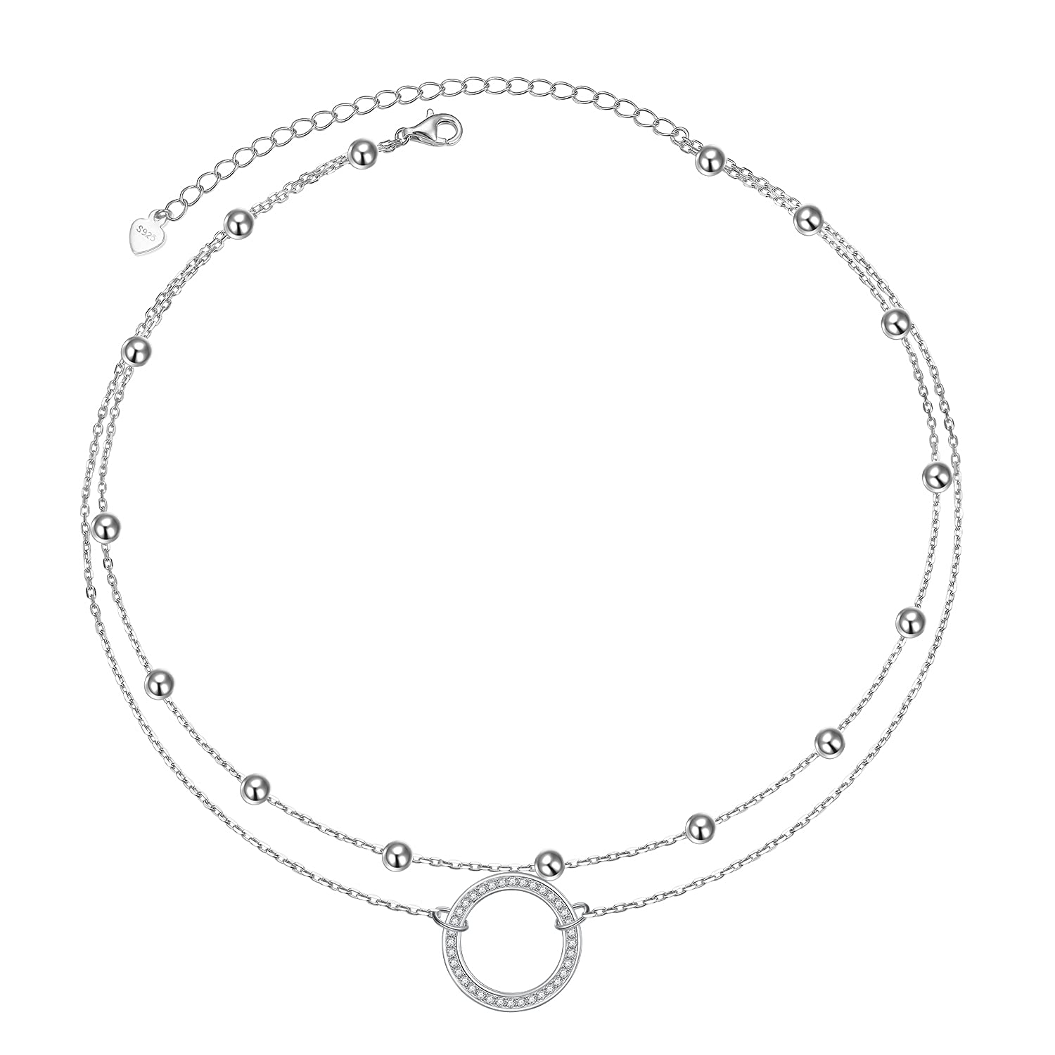 Ladytree S925 Sterling Silver Dainty Simple Choker Necklace,Rolo Chain,Adjustable 13 inches to 16 inches
