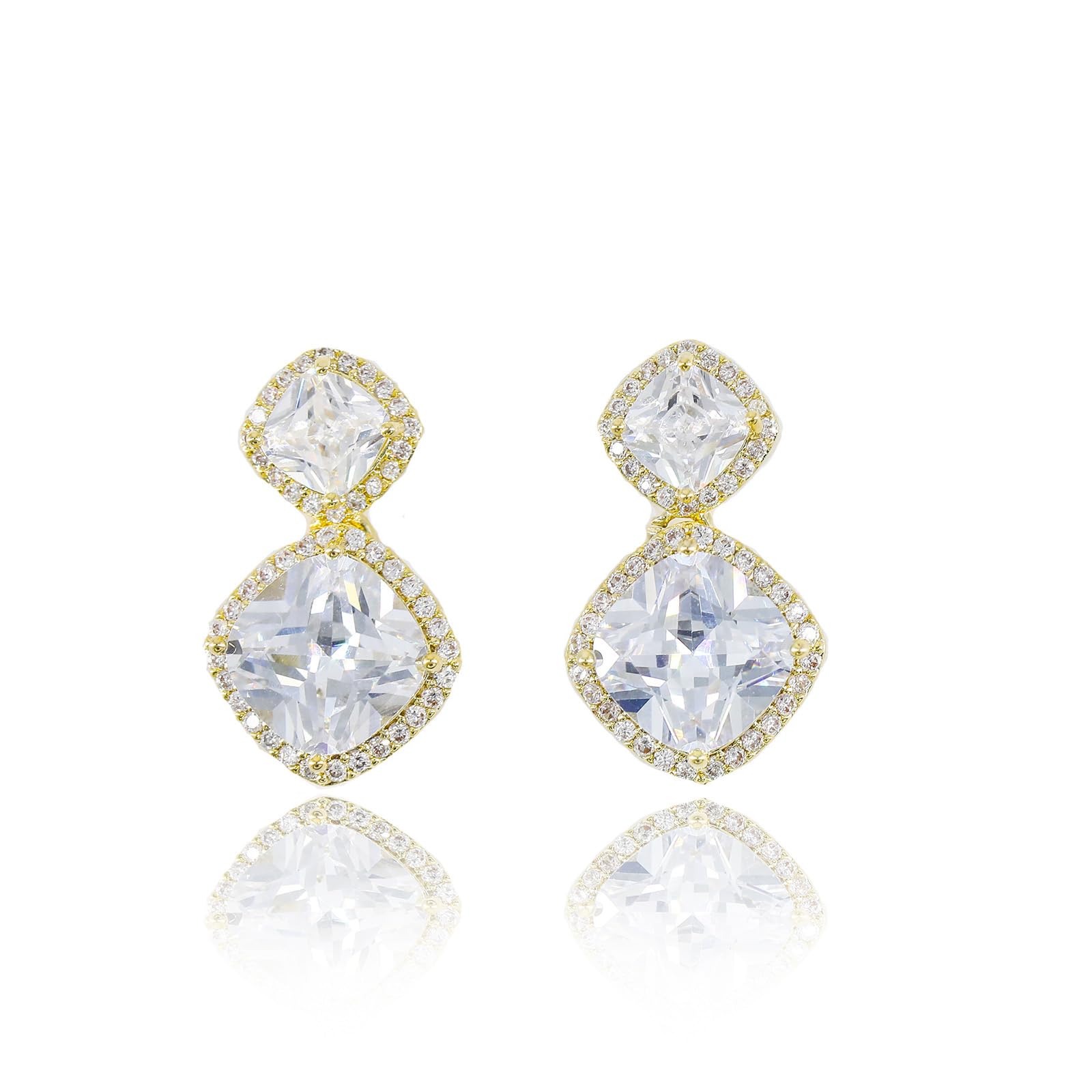 SUNGLEES Cushion Princess Cut Simple Drop Post Clear Cubic Zirconia Dangle Stud Bridal Earrings For Wedding Prom Anniversary