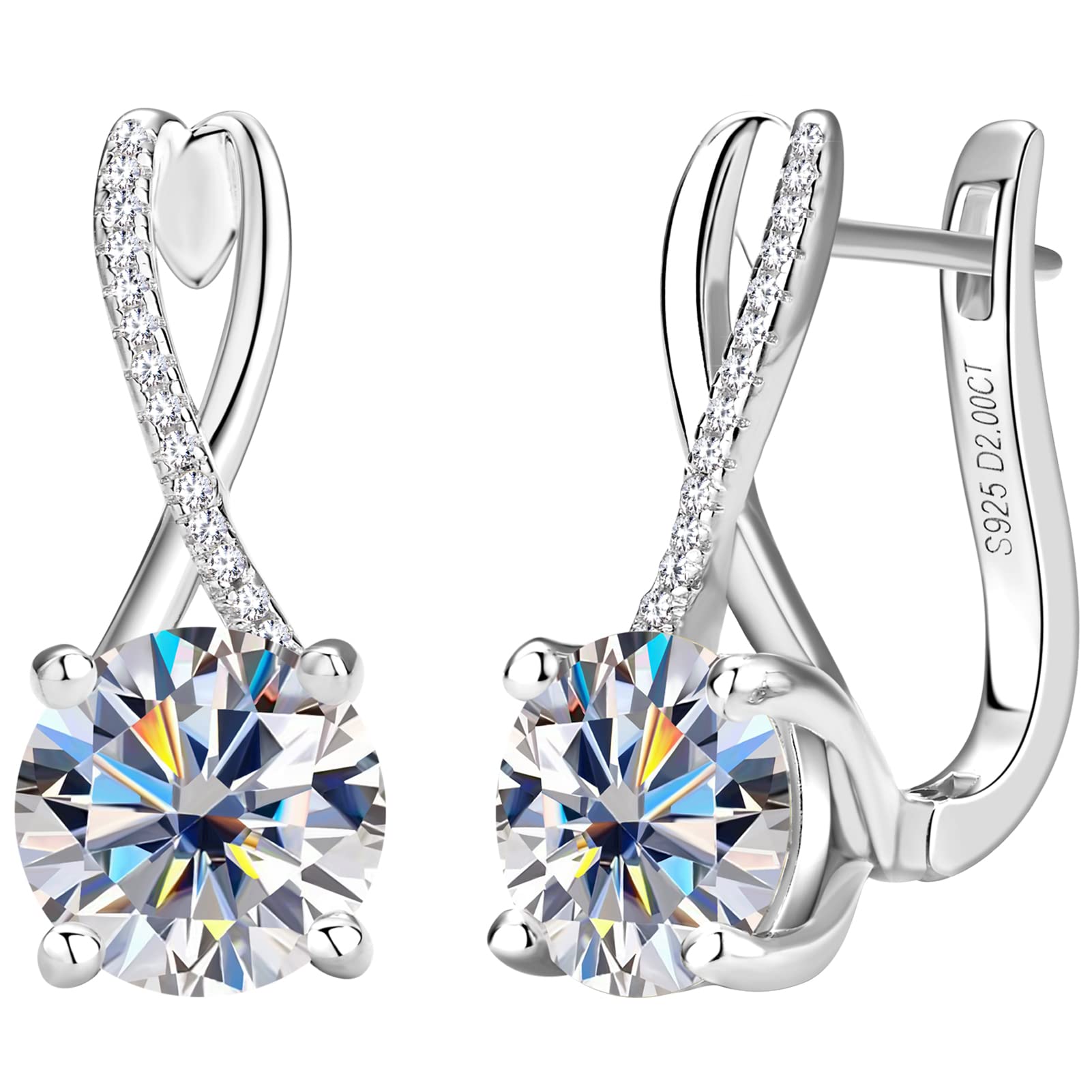 PROSTORY 2CT Moissanite Infinity Hoop Earrings for Women, D Color VVS1 Clarity 925 Sterling Silver Twisted Hoop Earrings for Mon Wife Birthday Gifts