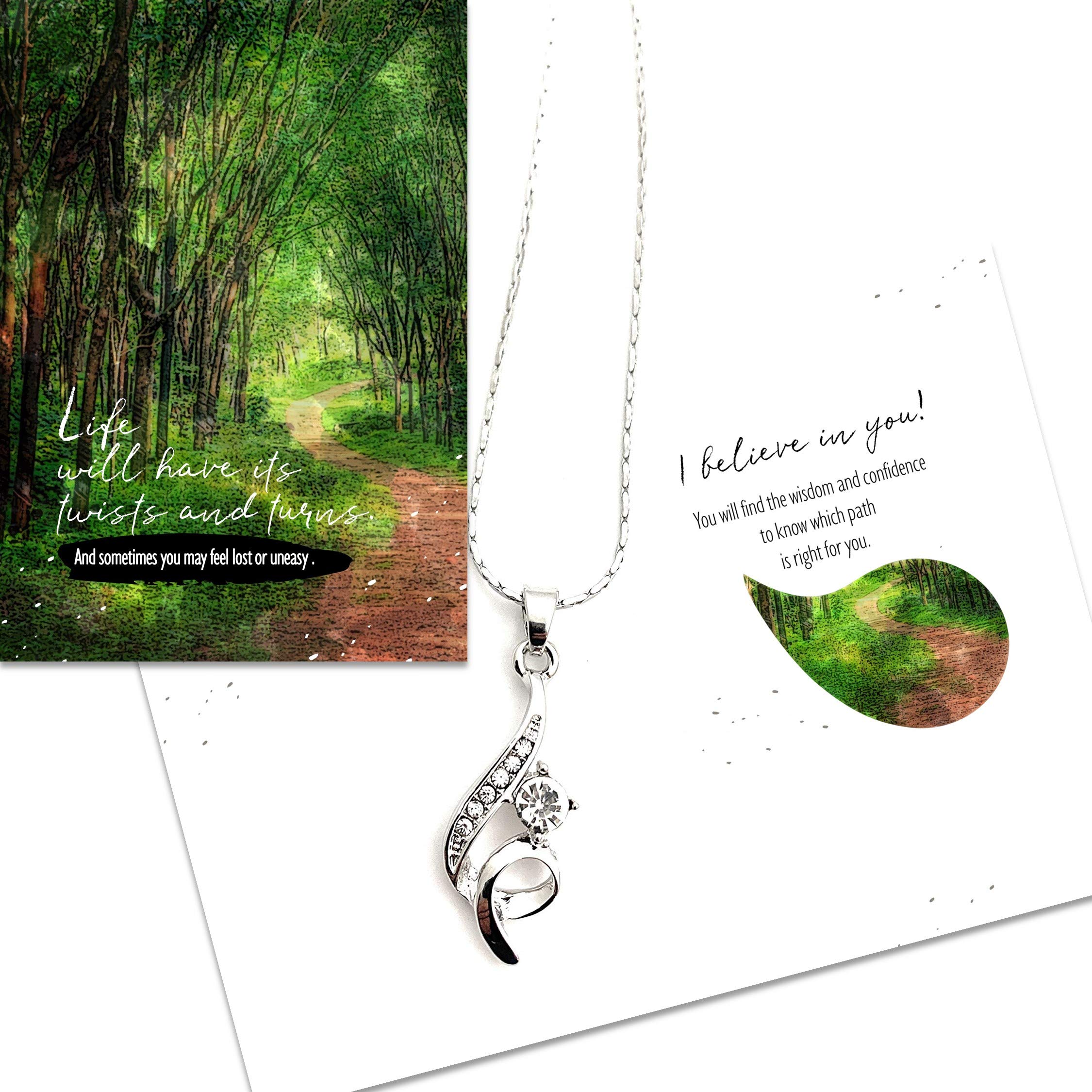 Smiling Wisdom - I Believe in You - Take the Path That is Right for You - Discernment Greeting Card and Journey Necklace Gift Set - Daughter